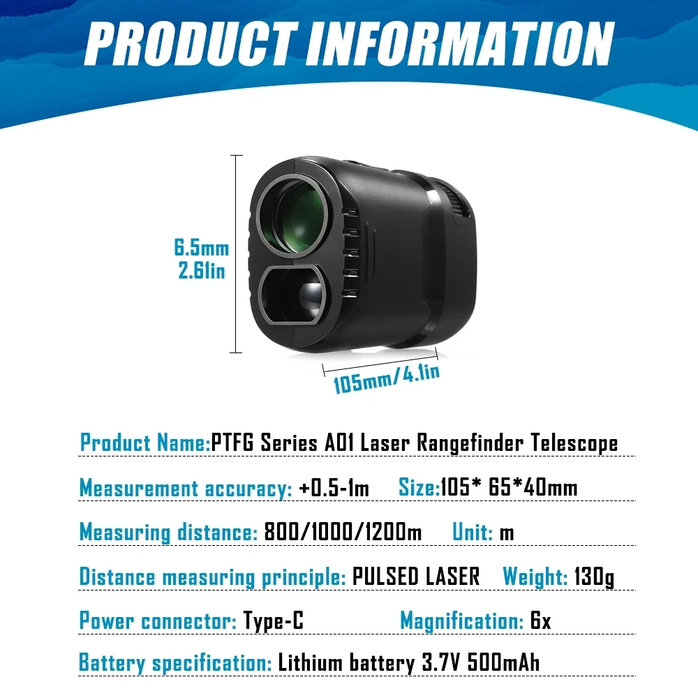 Este telémetro cuenta con una pantalla LCD de transmitancia de luz superior, aumento 6X y óptica multicapa para proporcionar a los usuarios imágenes nítidas y un amplio campo de visión. Puede medir sus objetivos de forma rápida y constante, ampliamente utilizado en golf, caza, construcción al aire libre y otras ocasiones.