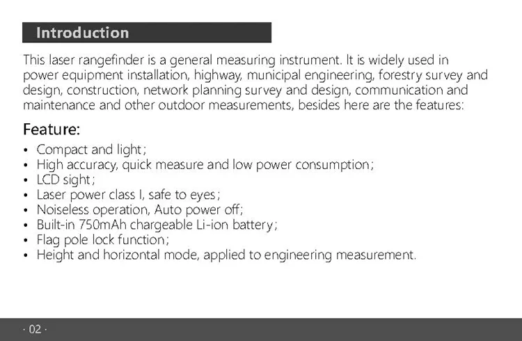 Este telémetro láser es un instrumento de medición general.Es ampliamente utilizado en instalación de equipos eléctricos, carreteras, ingeniería municipal, estudios y diseño forestales, construcción, estudios y diseño de planificación de redes, comunicaciones y mantenimiento y otras mediciones al aire libre, además de aquí las características: