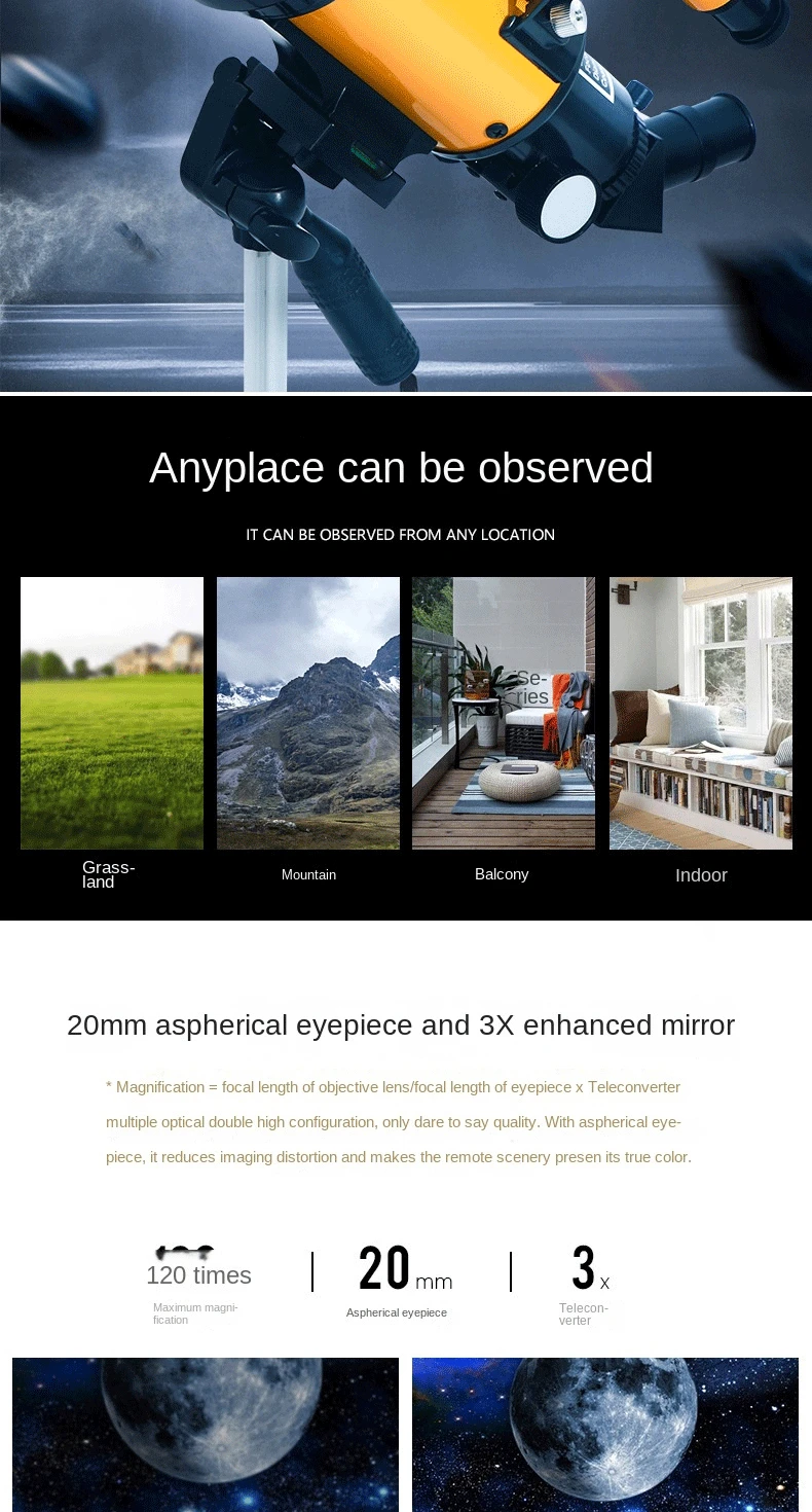 2.Puede observar la nebulosa, la luna y la marte, muy adecuado para aficionados y estudiantes.