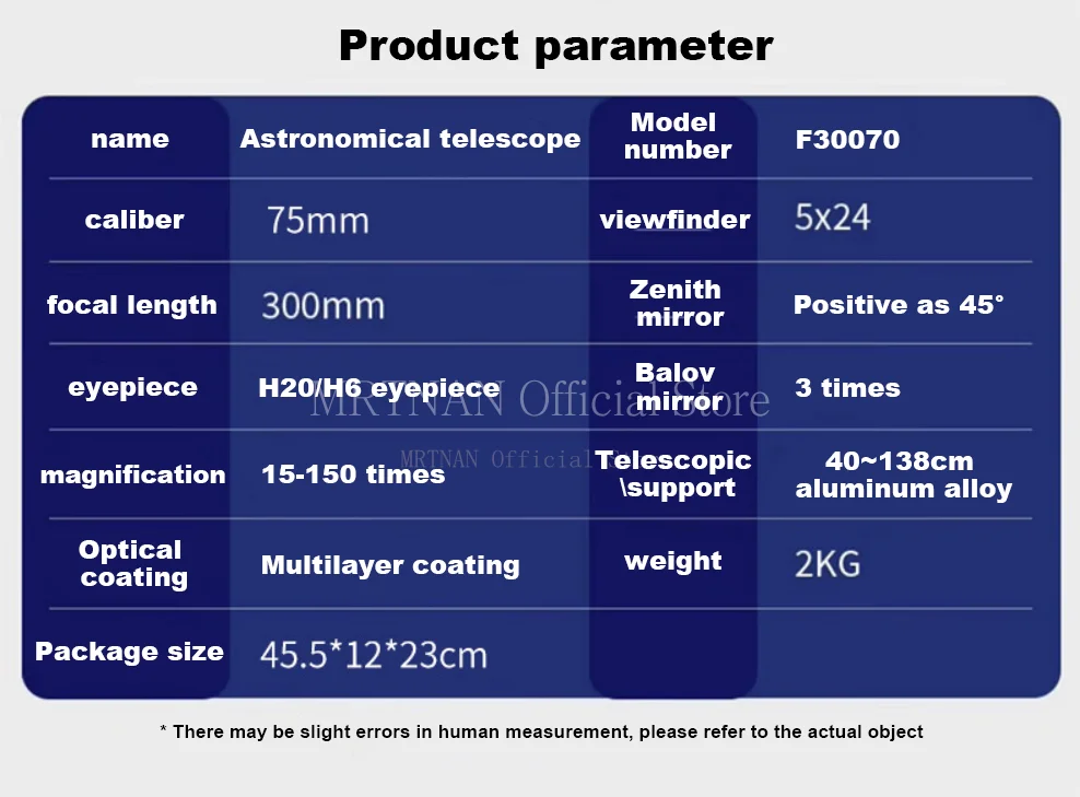 Especificaciones:Telescopio astronómico profesional