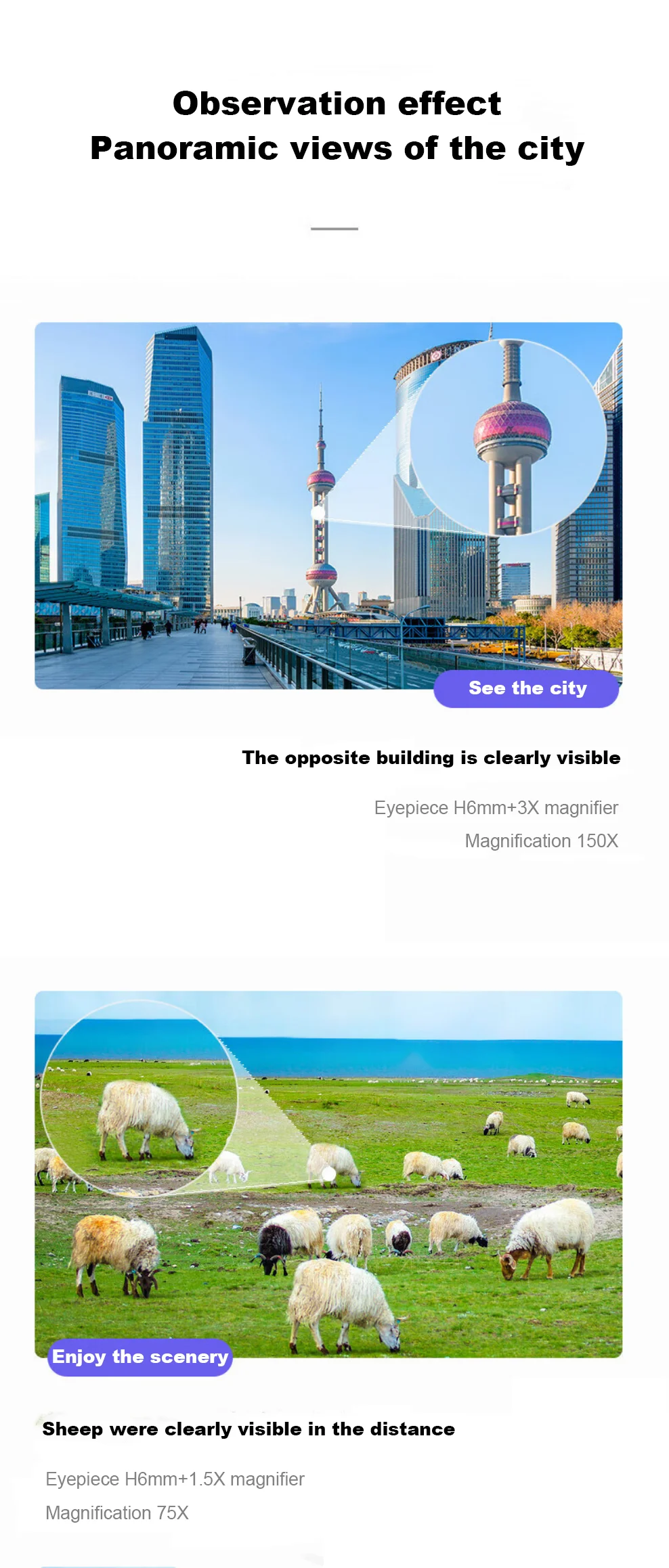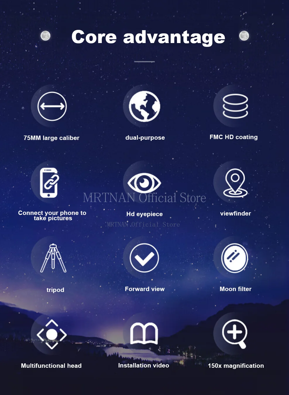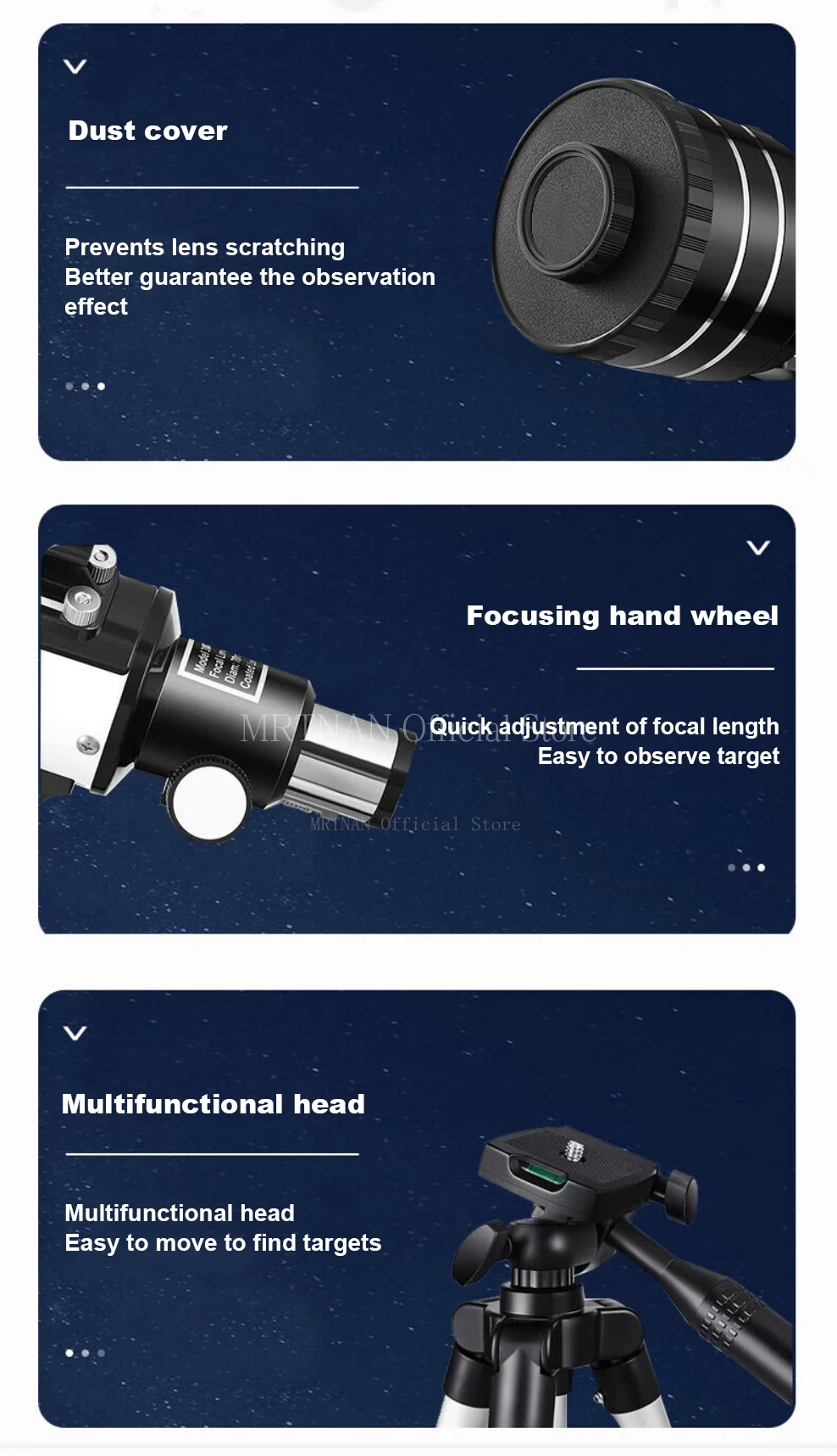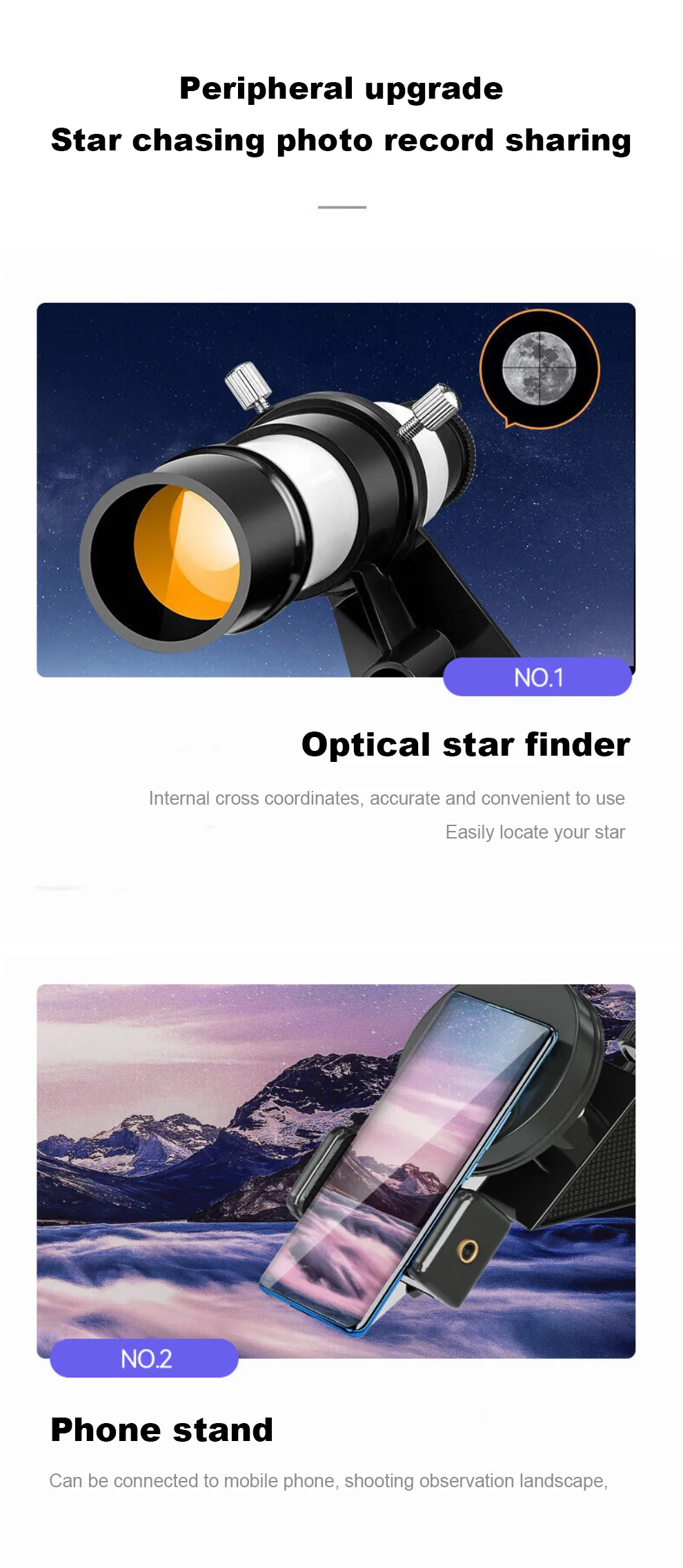 2.Puede observar la nebulosa, la luna y la marte, muy adecuado para aficionados y estudiantes.