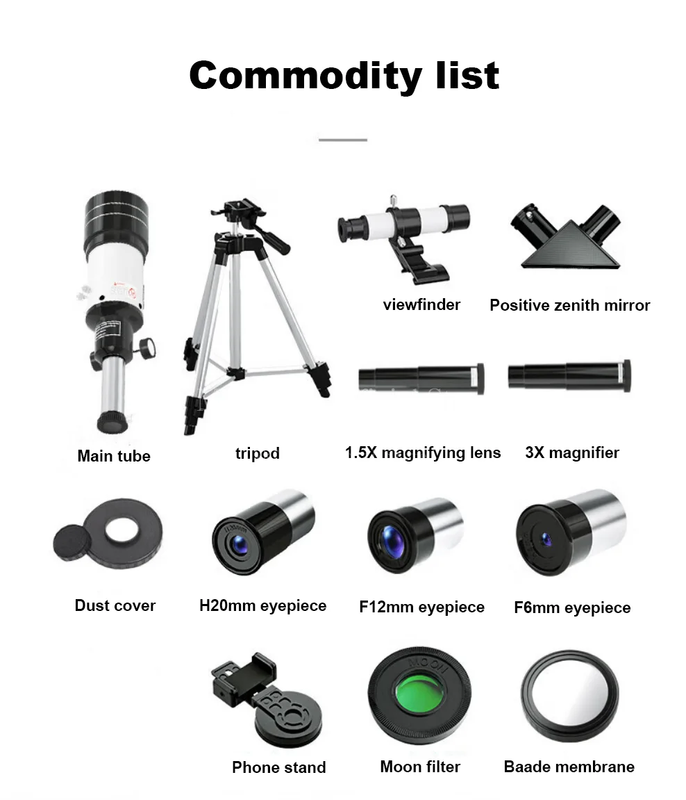 Telescopio astronómico profesional de longitud focal de 300MM para espacio, ocular de 70MM, binoculares monoculares potentes Moon Star Mars