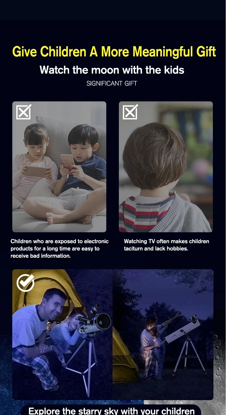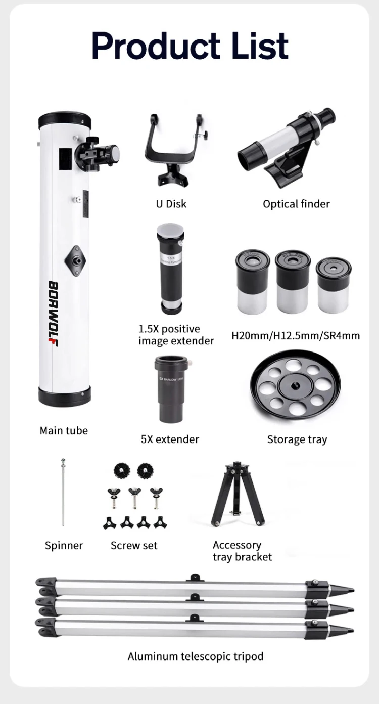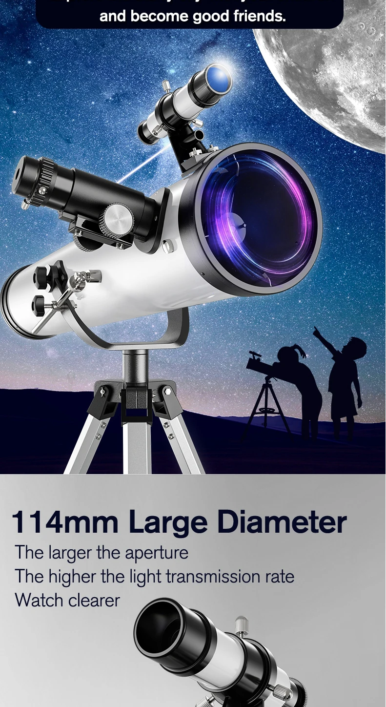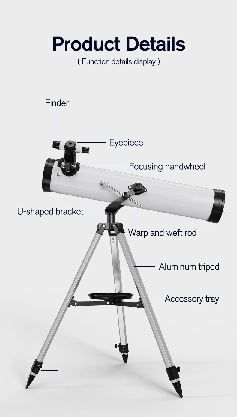 F70076 Reflective Professional Astronomical Telescope Monocular 875X HD for Stargazing Bird Watching Kids Gift Moon Sun Filter