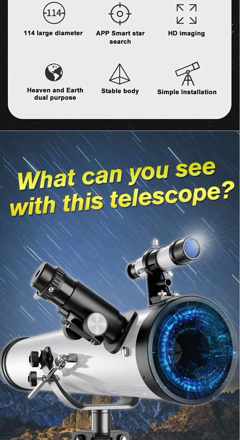 3. When the weather is clear, you can see Saturn's rings and Jupiter stripes (the largest dark line), Jupiter, Venus, nebulae, constellations, meteor showers, etc. Of course this requires astronomical knowledge. Beginners are advised to start learning by watching the moon and the sun.