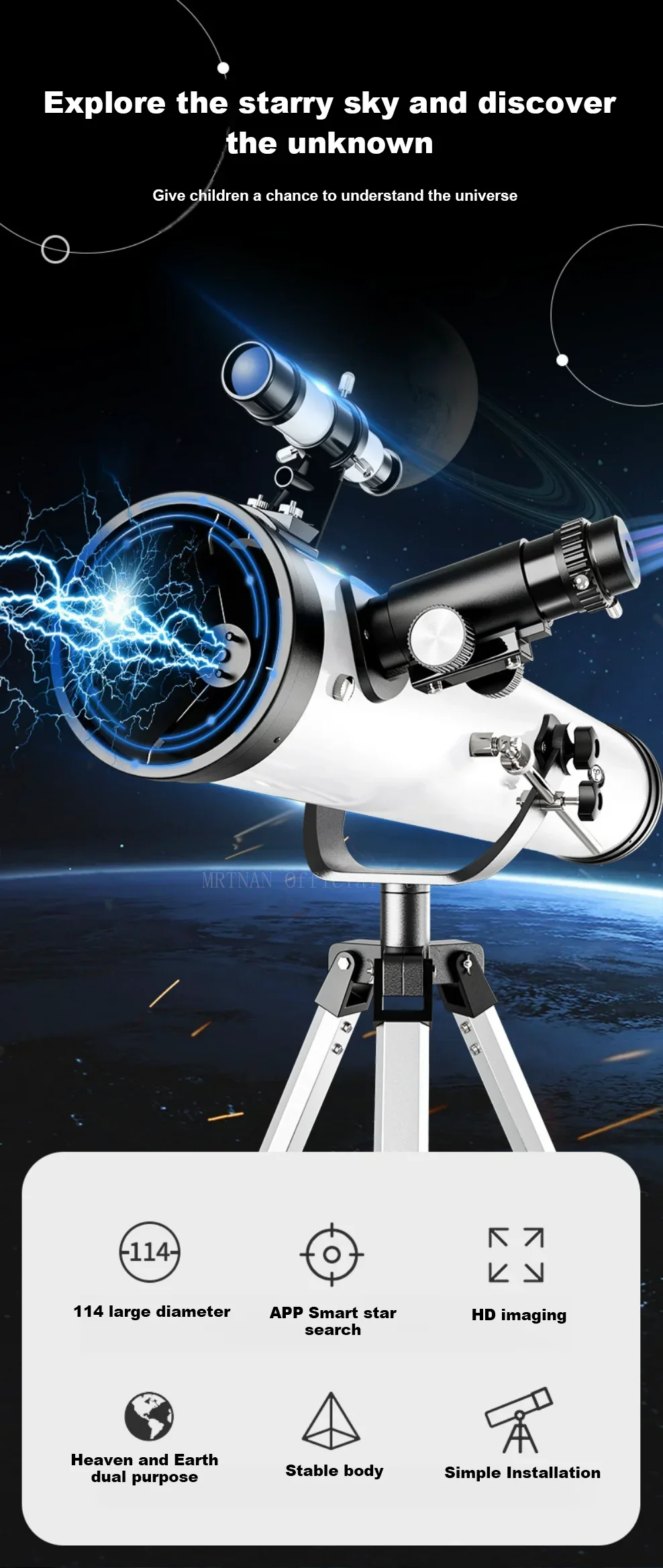 Telescopio astronómico profesional 875X F70076 Monocular de 114MM de gran apertura para observar aves boca sol