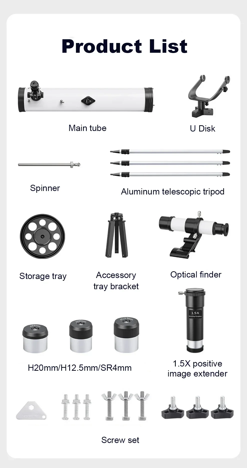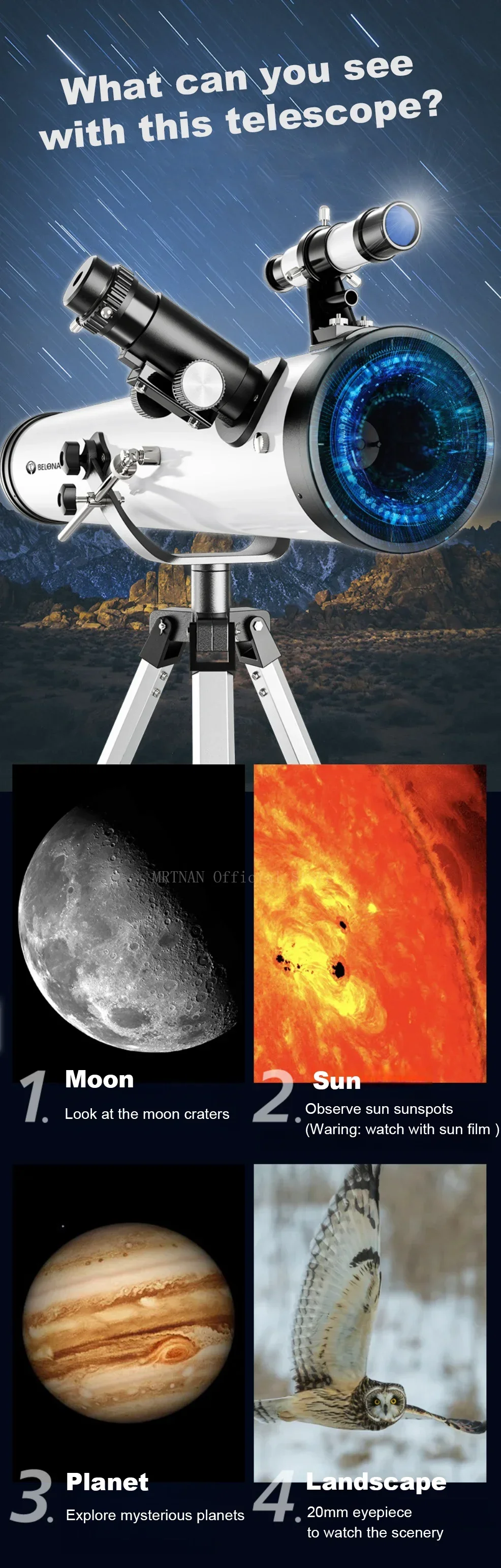 1. Soporte para teléfono móvil: conecte su teléfono móvil para tomar fotografías y compartir el cielo estrellado con amigos.
