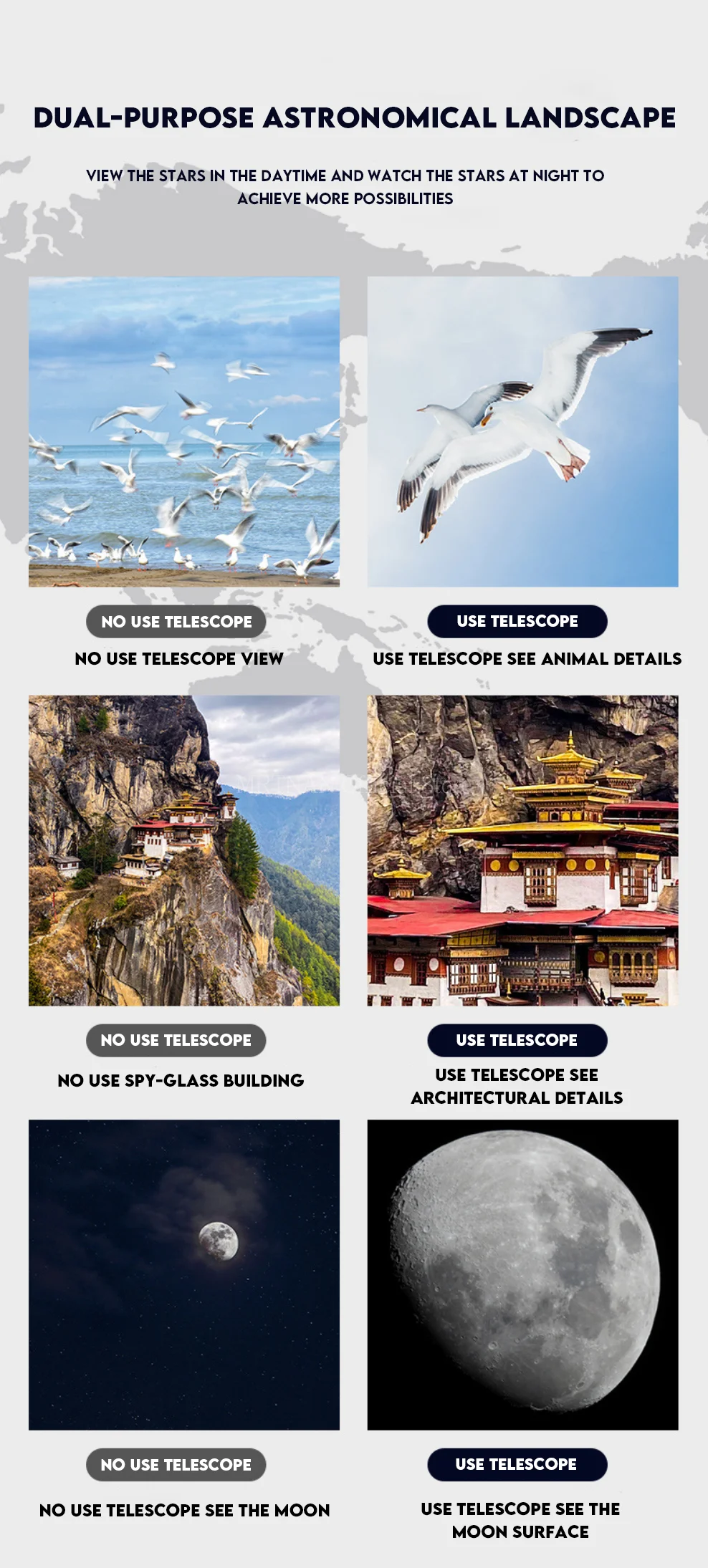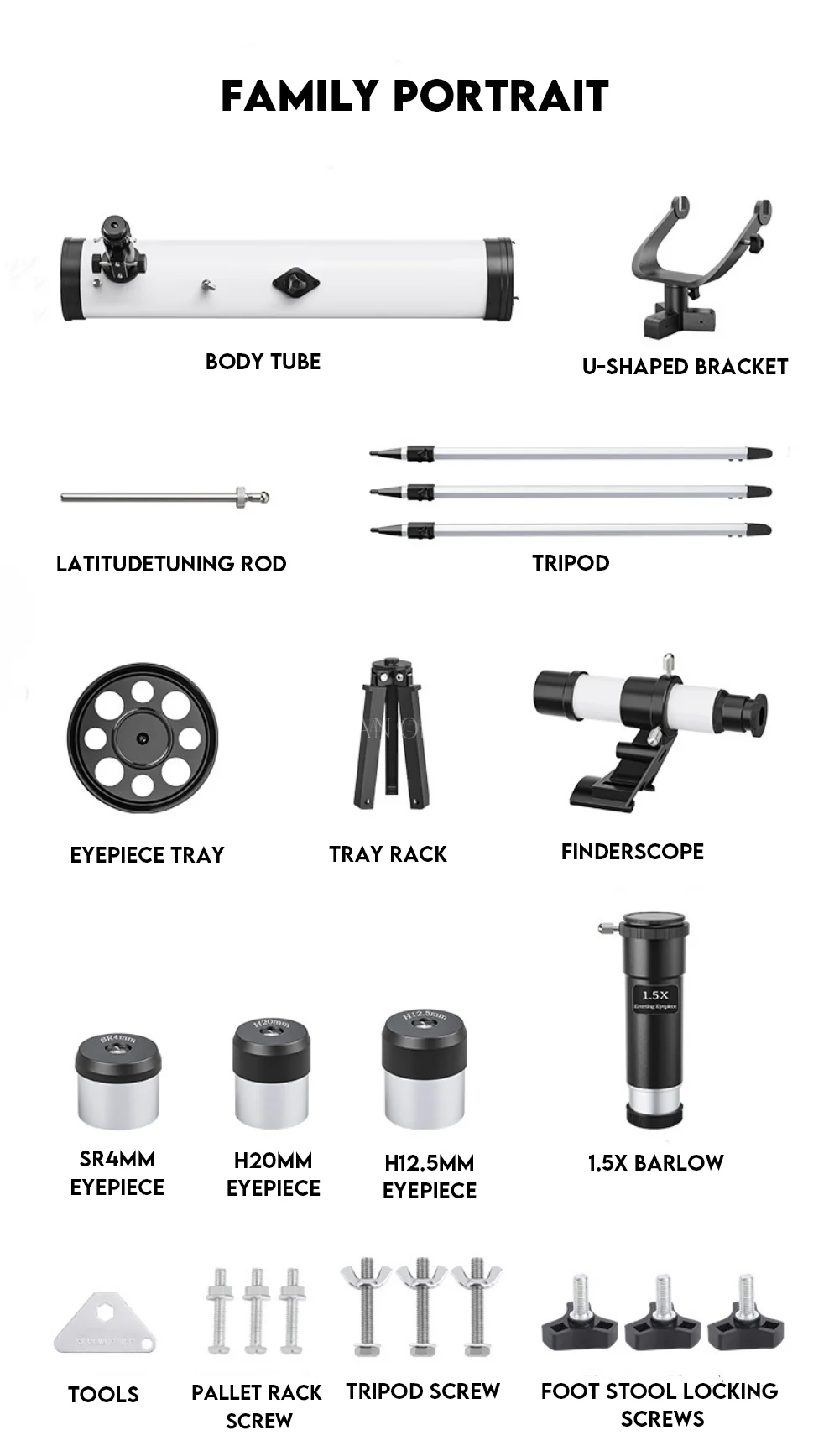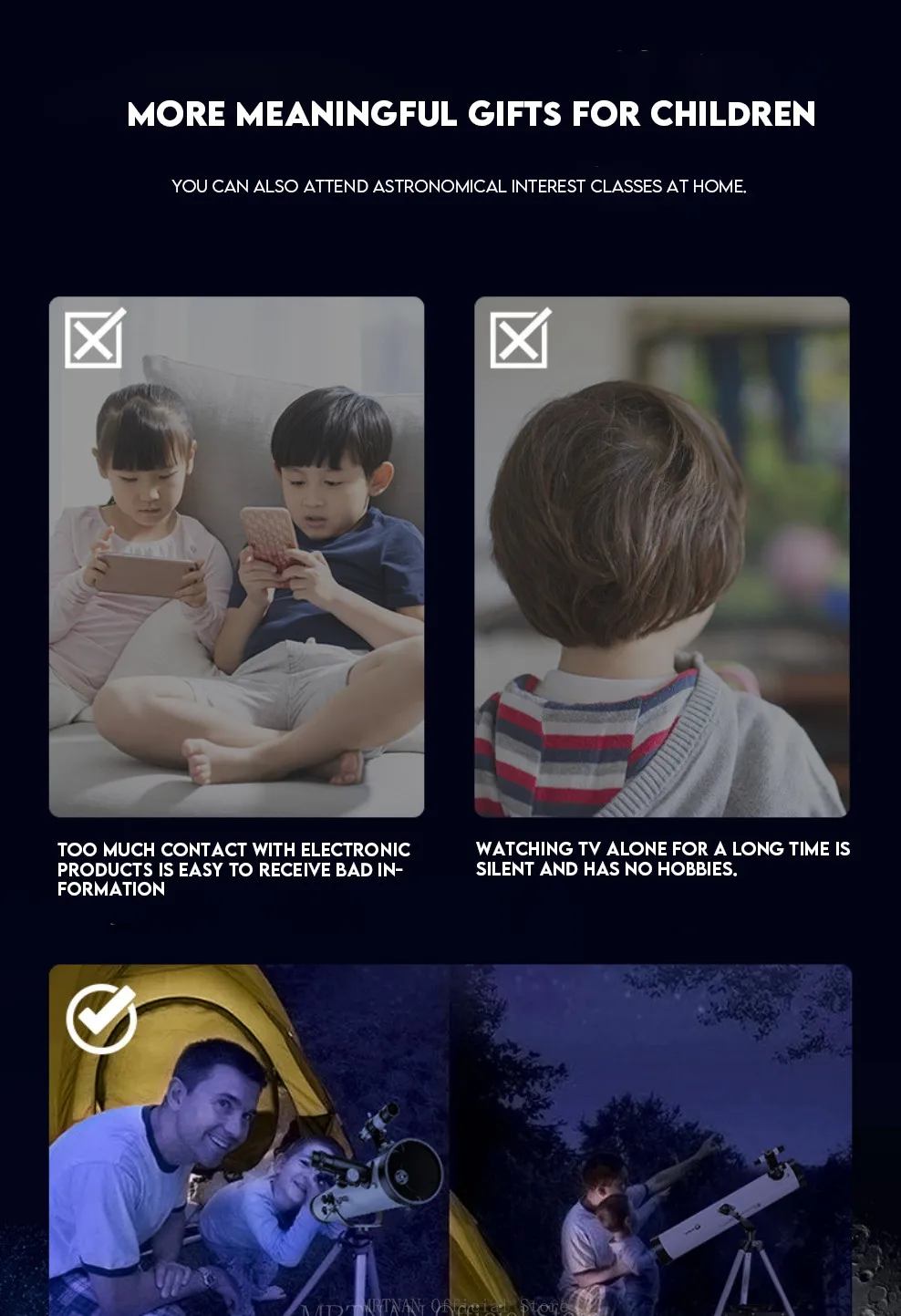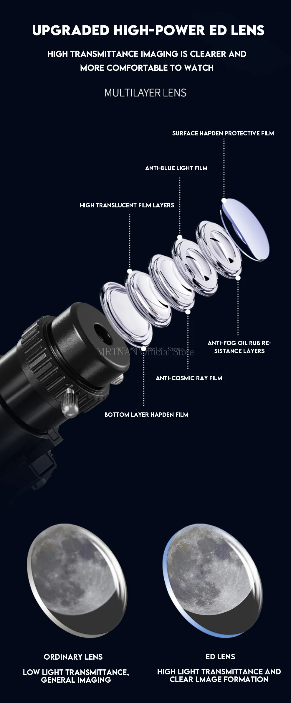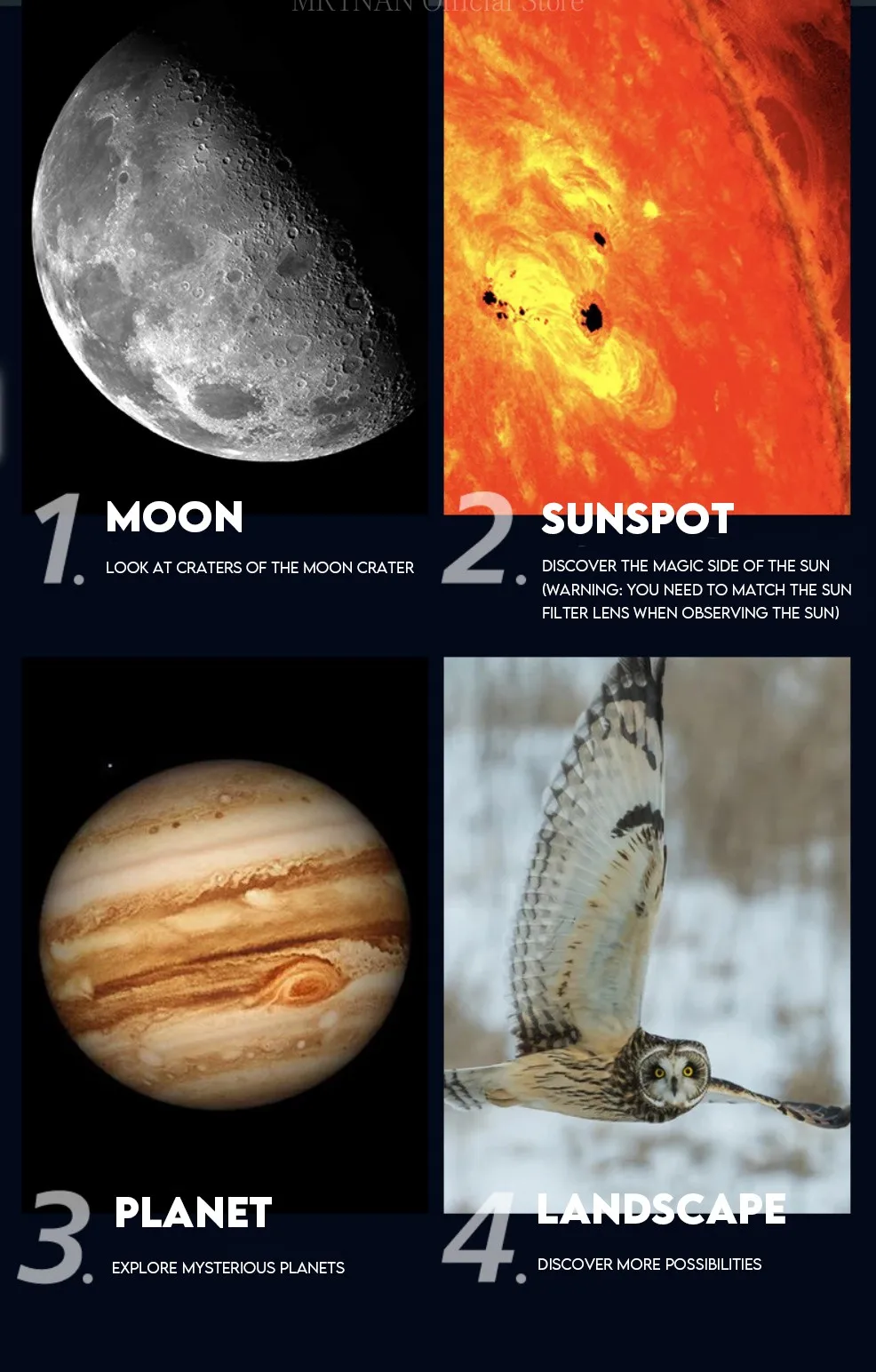 1. Soporte para teléfono móvil: conecte su teléfono móvil para tomar fotografías y compartir el cielo estrellado con amigos.