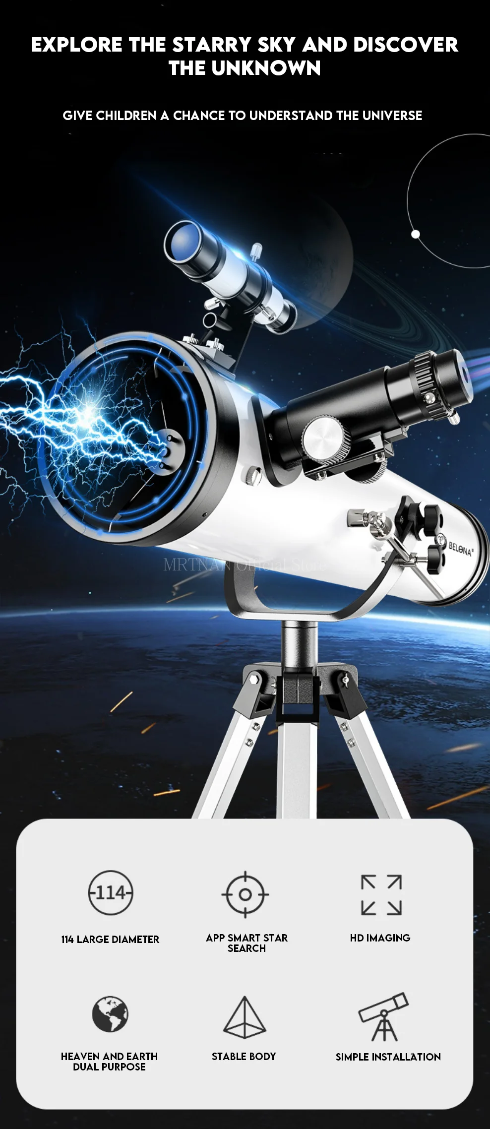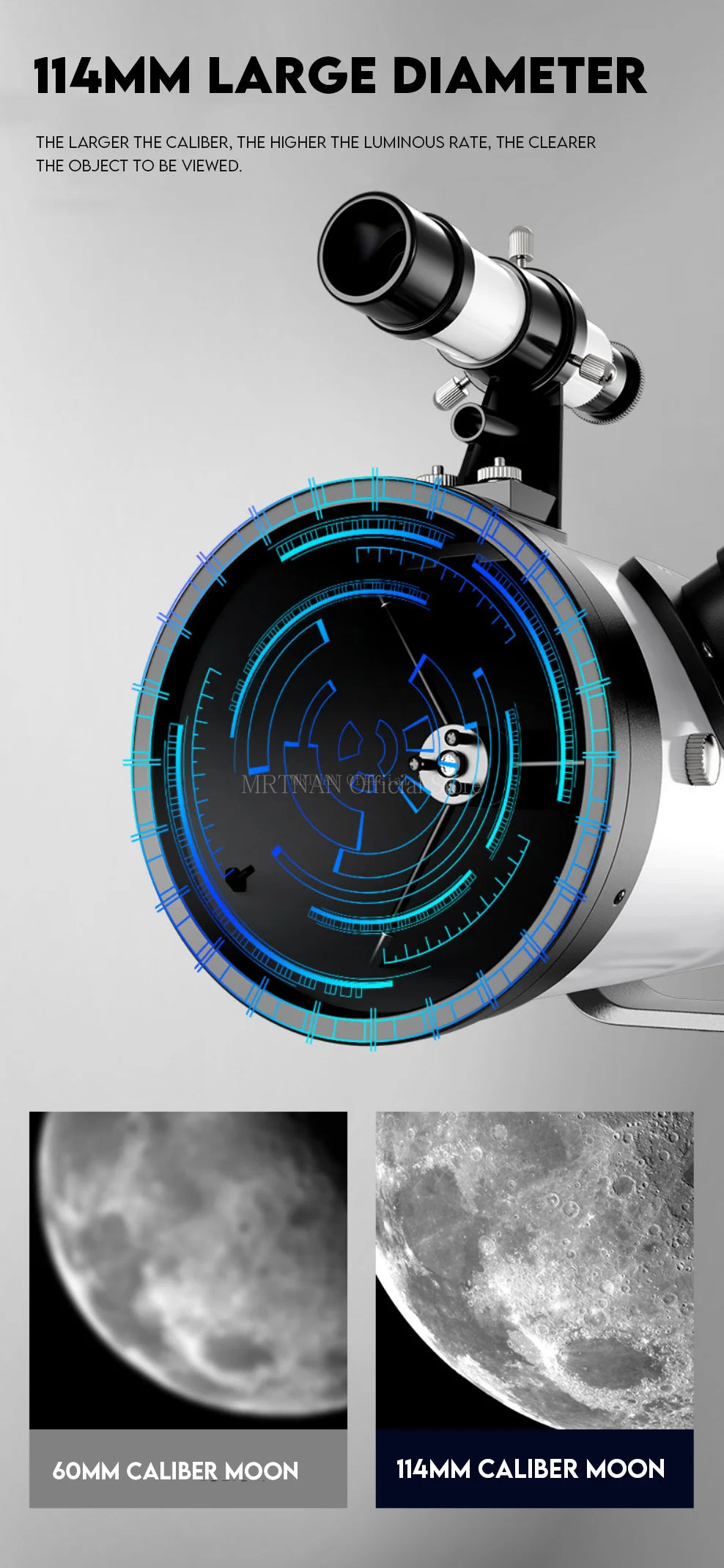 Telescopio astronómico profesional de aumento 35X-875X para espacio, binoculares de calibre de 114MM, trípode, Luna, júpiter, nebulosa