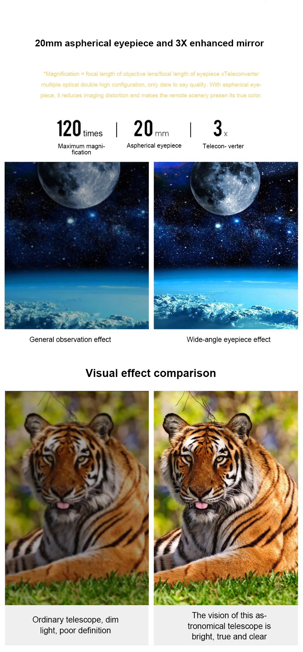 2.Puede observar la nebulosa, la luna y la marte, muy adecuado para aficionados y estudiantes.