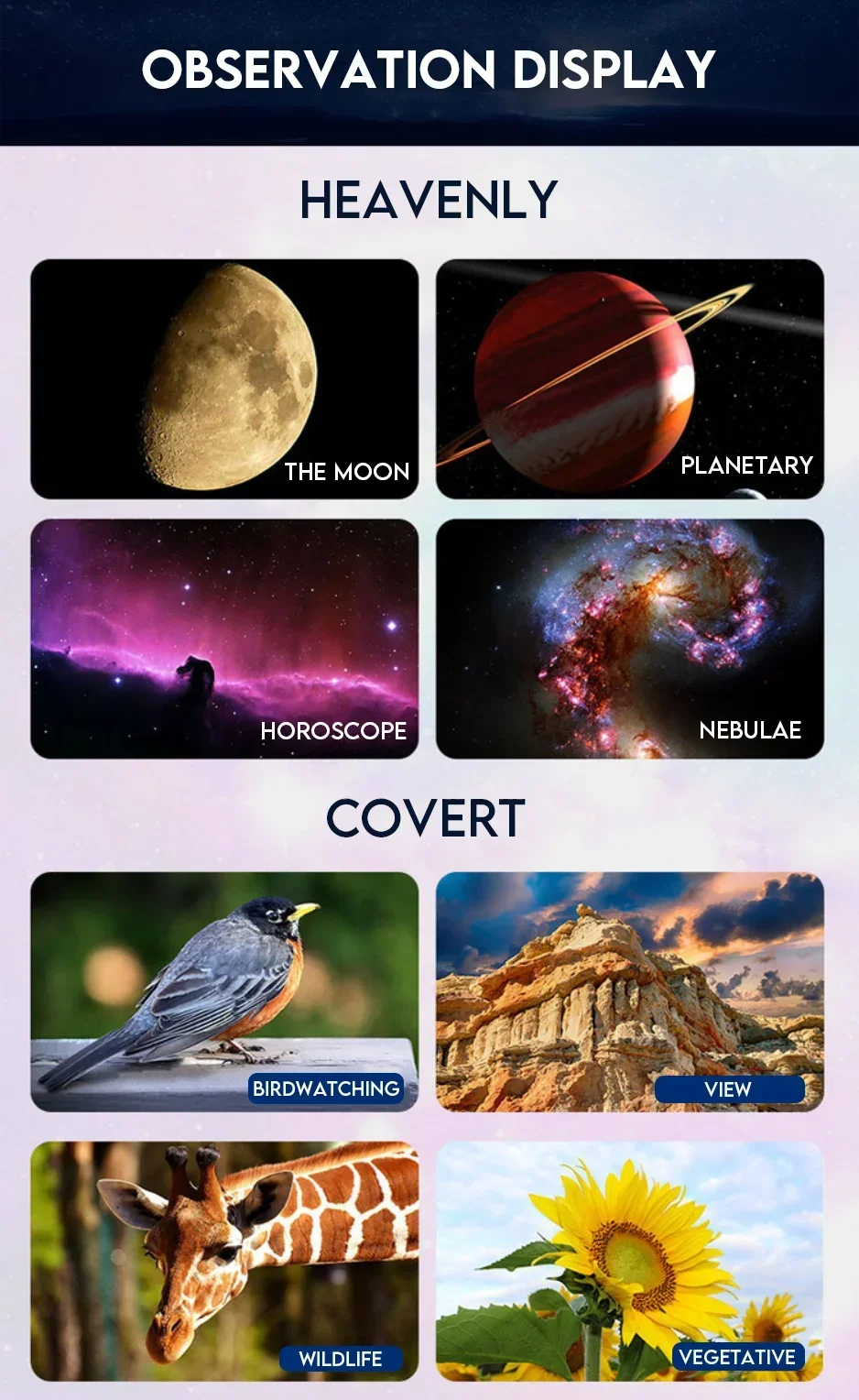 2.Puede observar la nebulosa, la luna y la marte, muy adecuado para aficionados y estudiantes.
