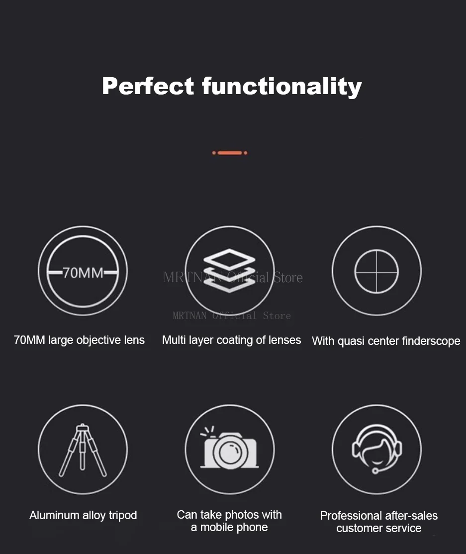 • Lente HD de alta potencia: la lente HD de alta potencia del telescopio proporciona imágenes claras y detalladas de la luna y otros objetos celestes.