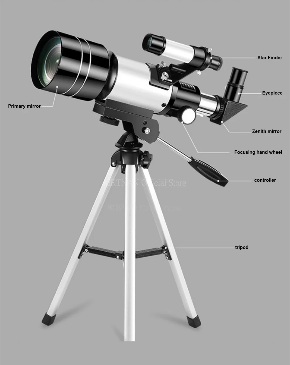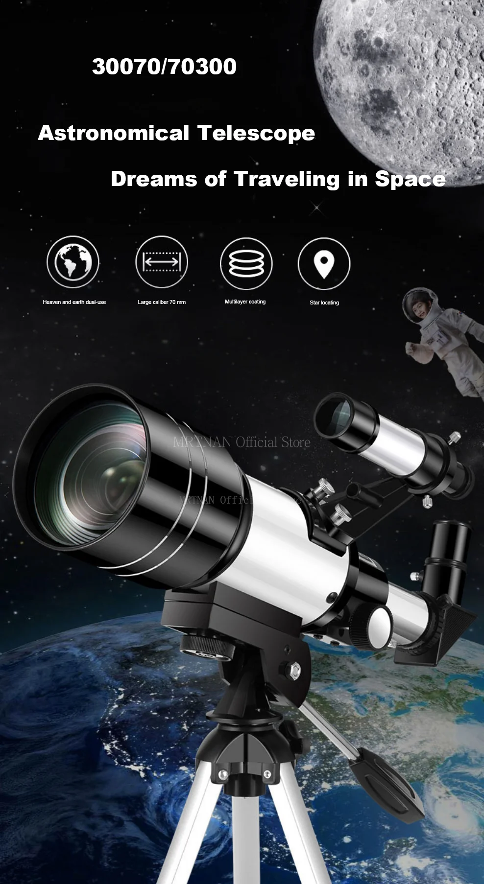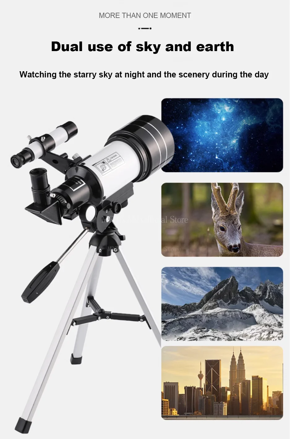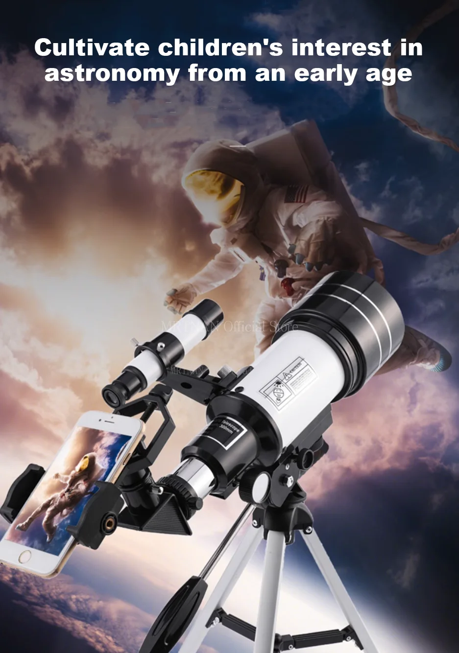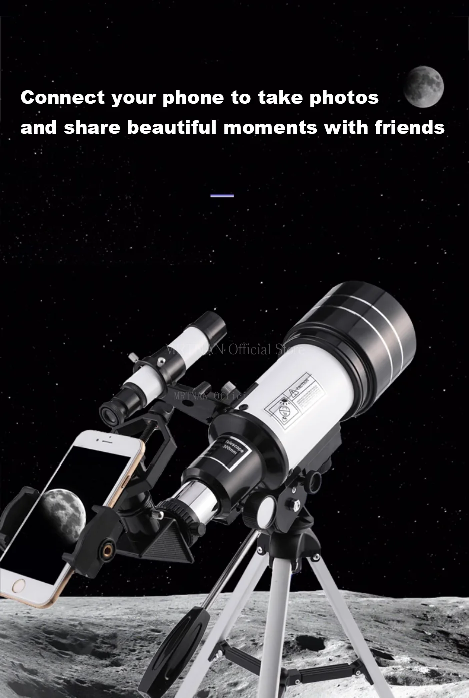 Telescopio astronómico 150X, telescopio de viaje portátil con refractador de apertura de 70mm con adaptador de teléfono y control remoto inalámbrico