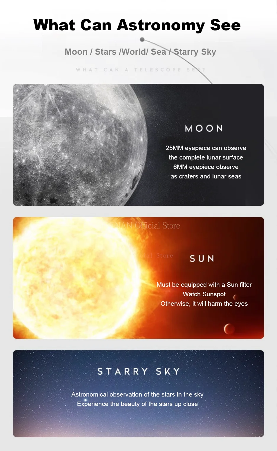 2.Puede observar la nebulosa, la luna y la marte, muy adecuado para aficionados y estudiantes.