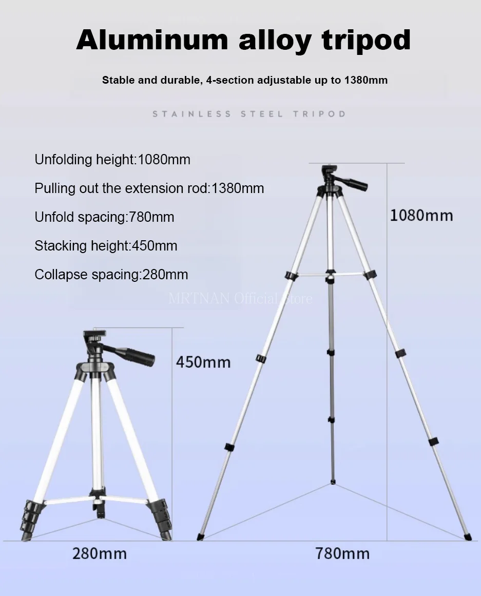 Trípode: Trípode de aleación de aluminio: 45-138 cm (17,71"-54,33")