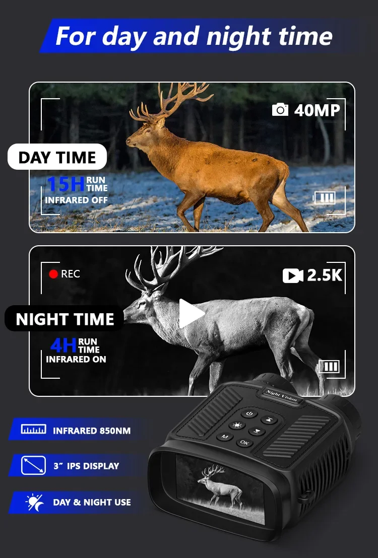 1.Se puede utilizar tanto de día como de noche, proporcionando una excelente visión en diversas condiciones de iluminación.