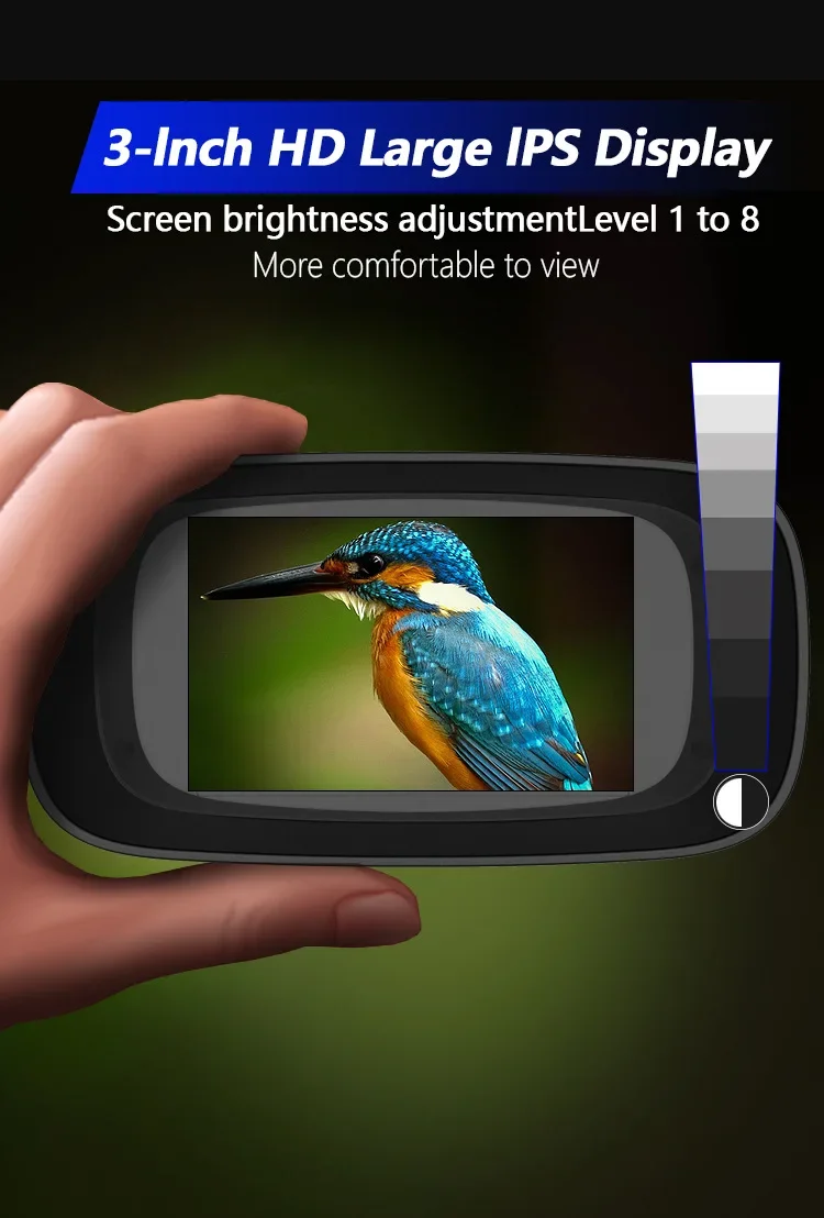 Batería de litio de 5000 mAh, visión nocturna, pantalla IPS de 3,0 pulgadas, zoom óptico de 10x, zoom digital de 8x