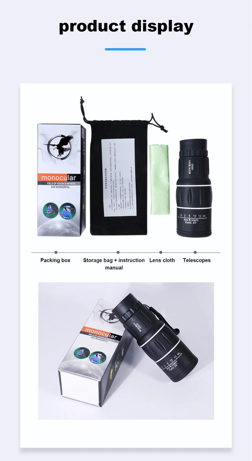 El telescopio monocular tiene una visión clara cuando hay luz reflejada por la noche con un diseño incorporado de visión nocturna con bajo nivel de luz.