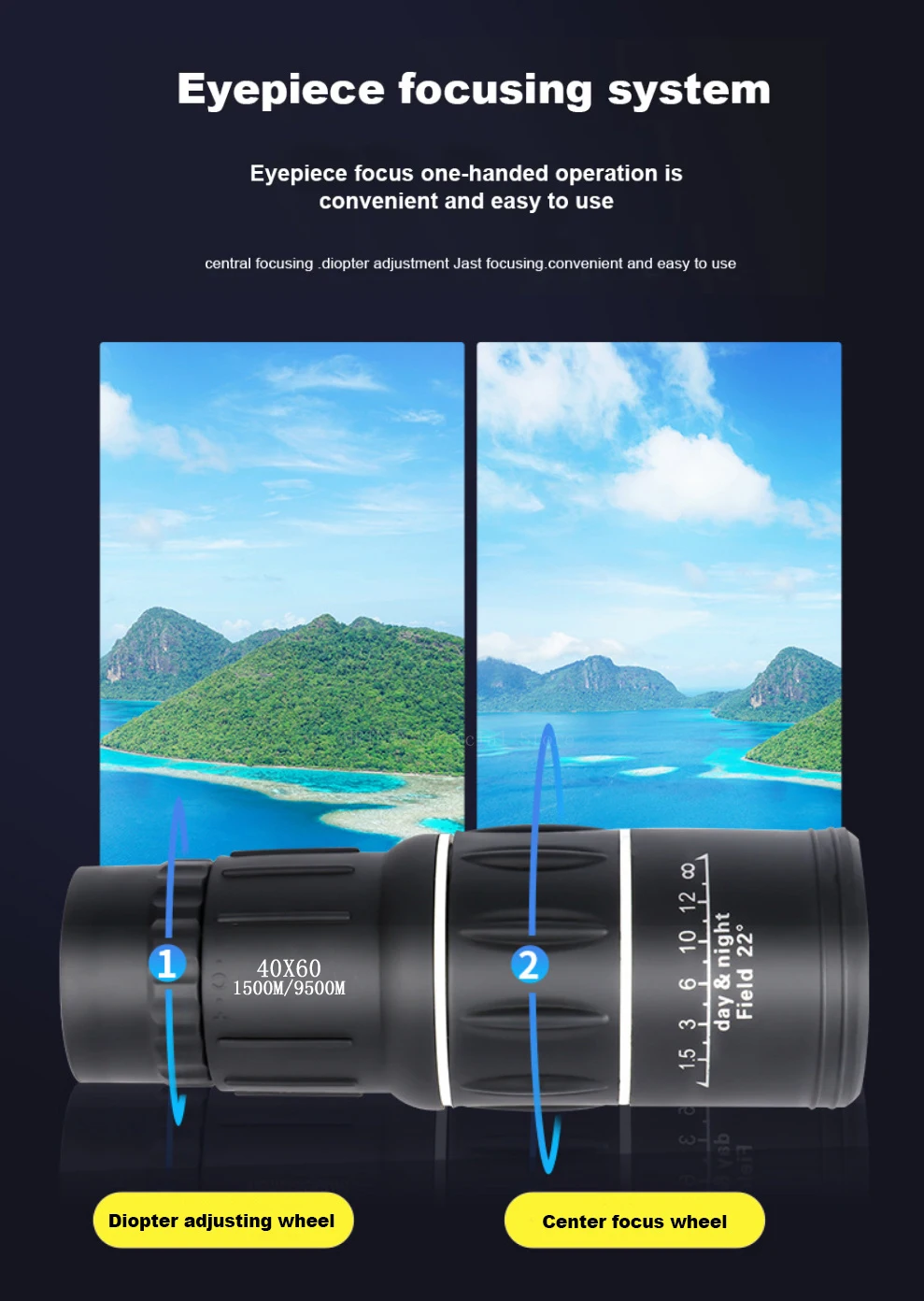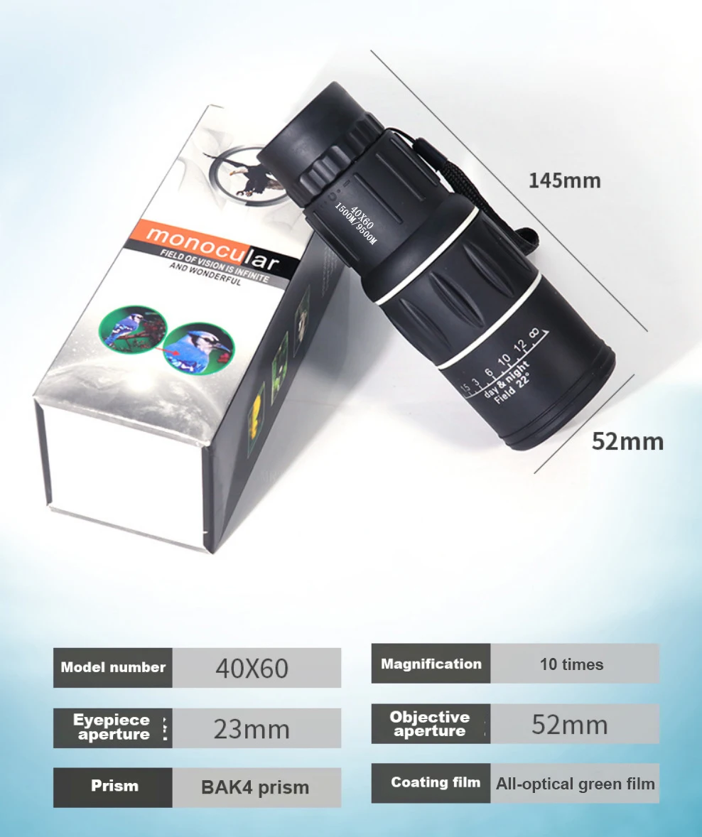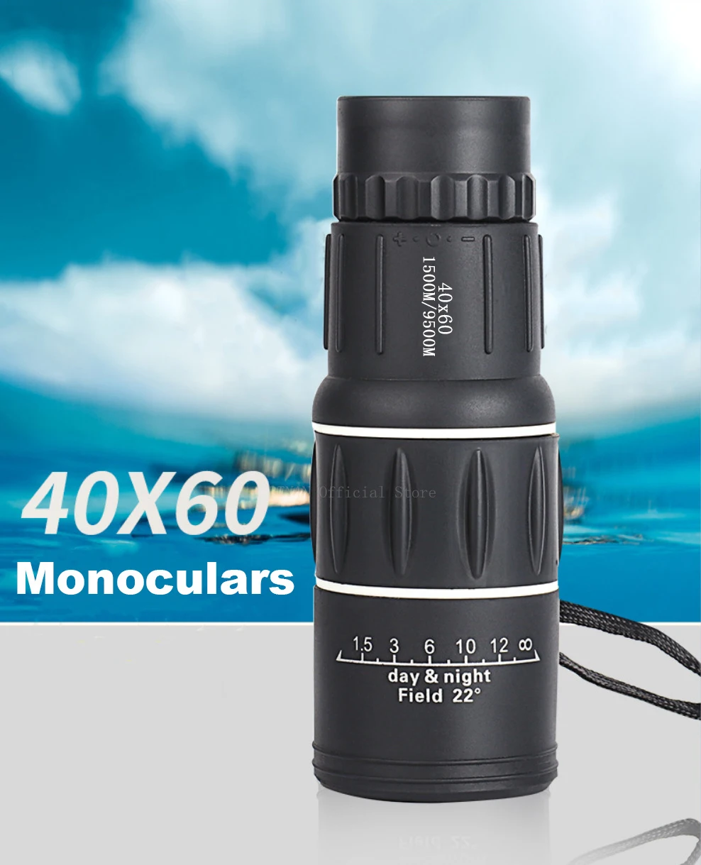 Telescopio Monocular 40x60, binoculares con Zoom de doble enfoque, 1500M/9500M, alcance HD, visión nocturna con correa, lente óptica/goma para exteriores