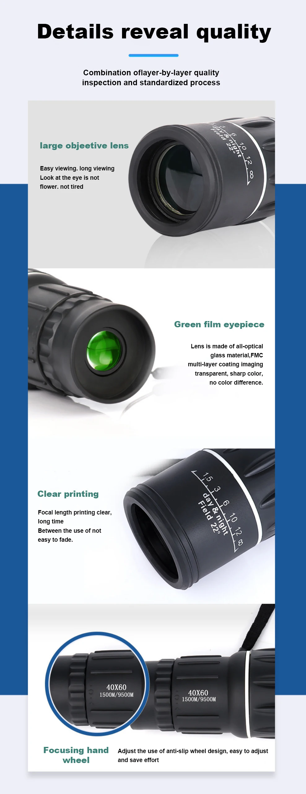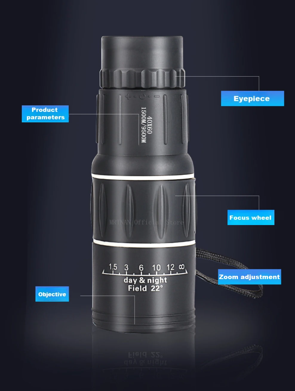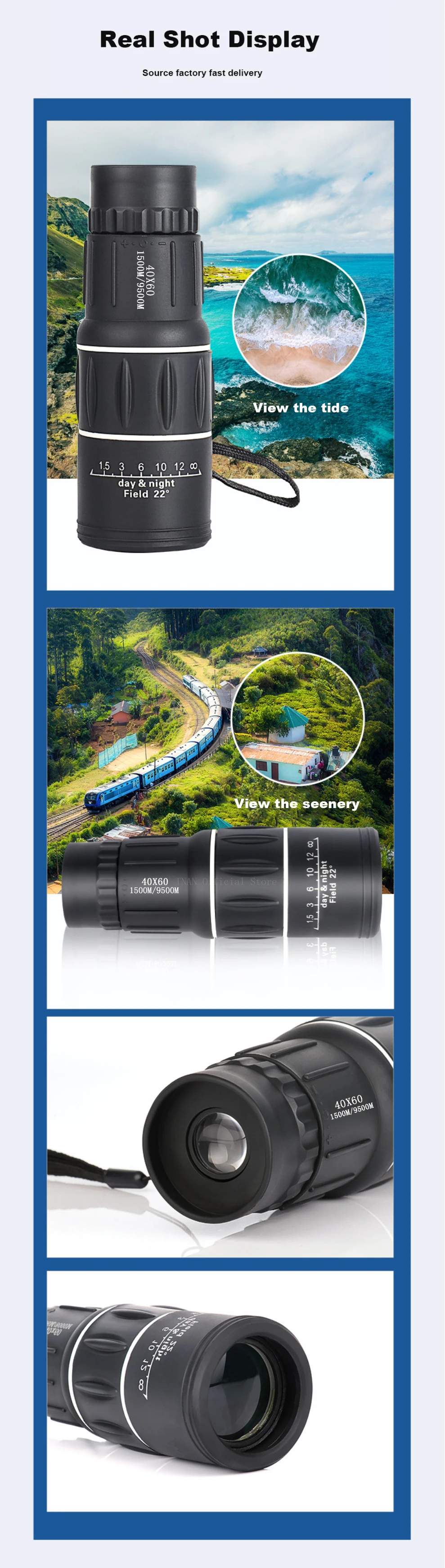 Telescopio Monocular 40x60, binoculares con Zoom de doble enfoque, 1500M/9500M, alcance HD, visión nocturna con correa, lente óptica/goma para exteriores