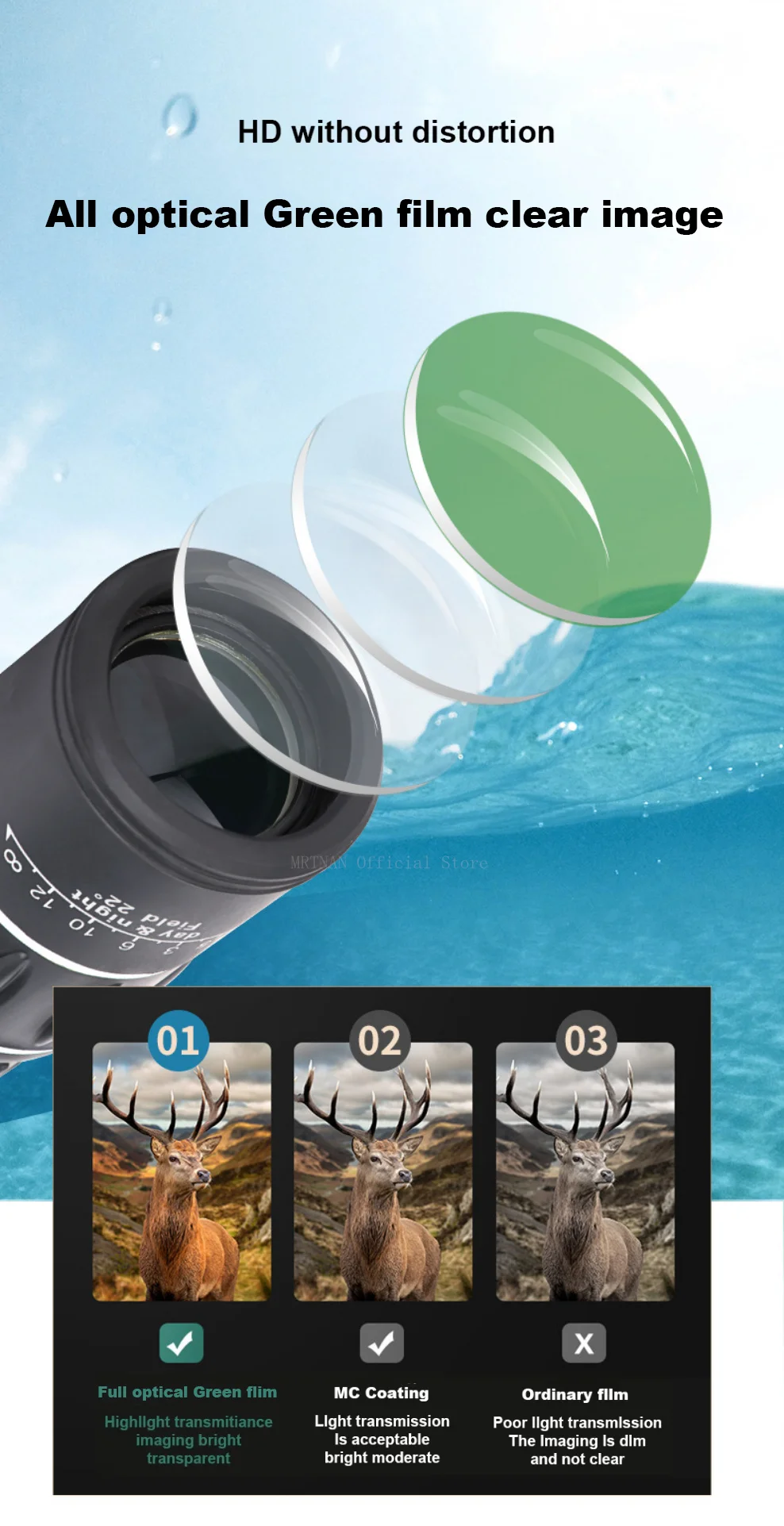 La lente adopta vidrio óptico que hace que la lente sea más transparente, clara y brillante.