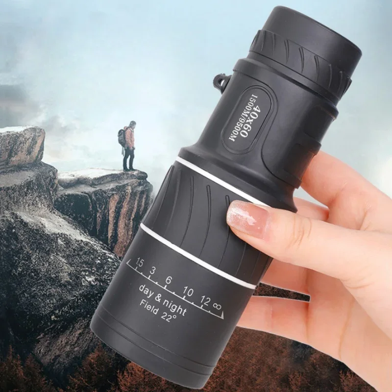 Telescopio Monocular 40x60, binoculares con Zoom de doble enfoque, 1500M/9500M, alcance HD, visión nocturna con correa, lente óptica/goma para exteriores