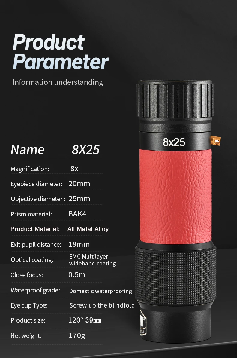 【Garantía de calidad, excelente servicio】 Nuestro objetivo es brindar a los clientes monoculares profesionales para adultos. La integridad y la profesionalidad son siempre nuestros principios. Todos nuestros monoculares de bolsillo resisten la prueba de diferentes condiciones y tiempo de uso.
