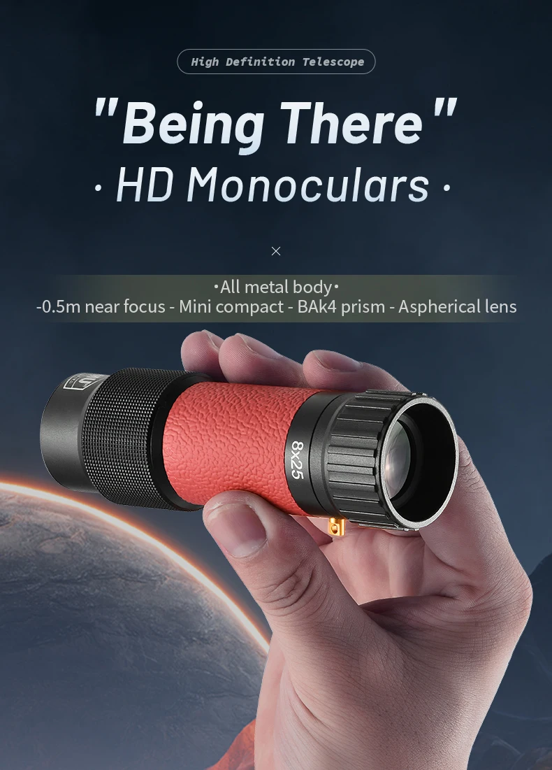 Telescopio Monocular Mini Monoculares Compactos de Bolsillo de 8X25mm para Adultos Monoculares de Prisma de Alta Potencia BAK4 Todo Metal para Viajes de Camping