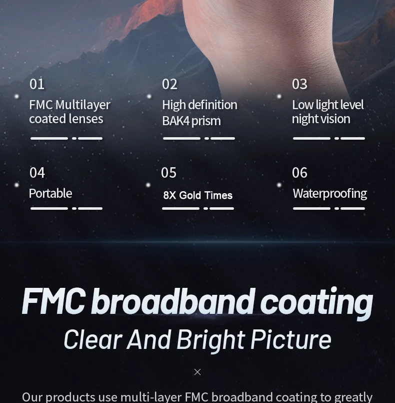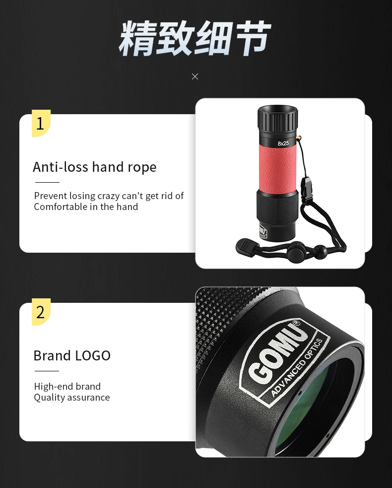 【Cuerpo de metal monocular de bolsillo resistente e impermeable IPX7】 Los sellos llenos de nitrógeno y de junta tórica garantizan un excelente rendimiento a prueba de agua y niebla para el monoscopio portátil en diversos entornos húmedos.Incluso cuando está completamente sumergido en agua, este mini telescopio monocular sigue funcionando bien.La estructura totalmente metálica hace que el telescopio de bolsillo sea más resistente y resistente a los golpes.En entornos hostiles, este telescopio portátil siempre puede brindarle soportes confiables.