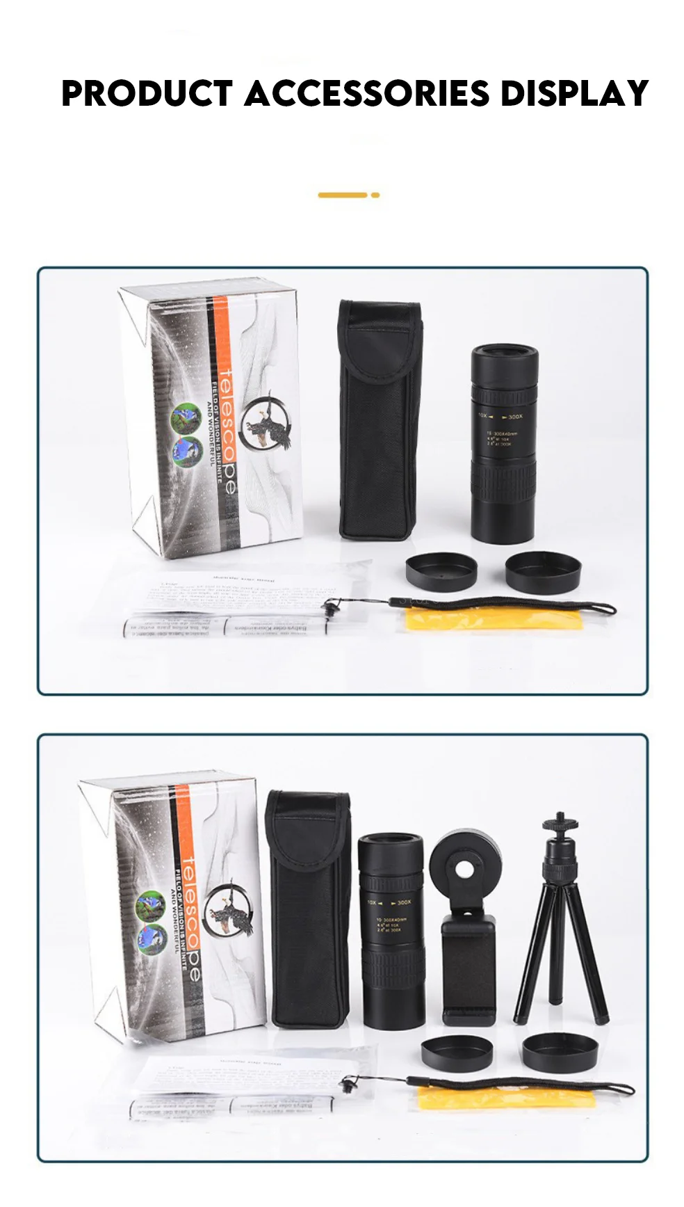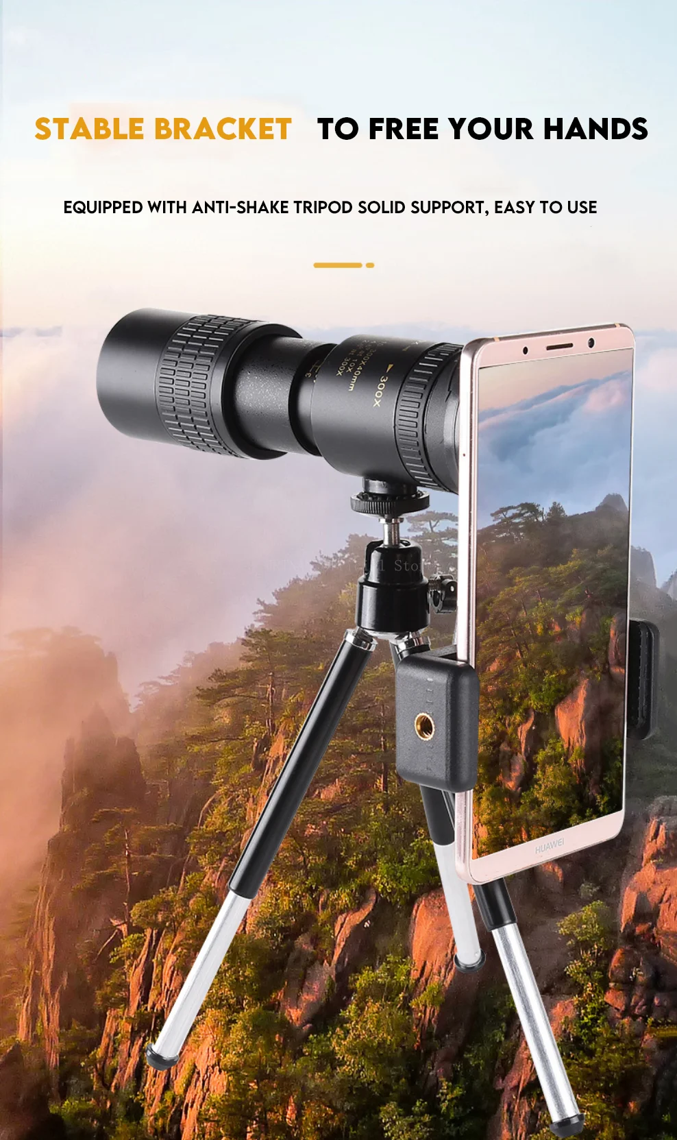 Telescopio Monocular de alta definición 10-300x40 con soporte para teléfono para observación de aves, caza, Camping, viajes, Monocular con Zoom potente