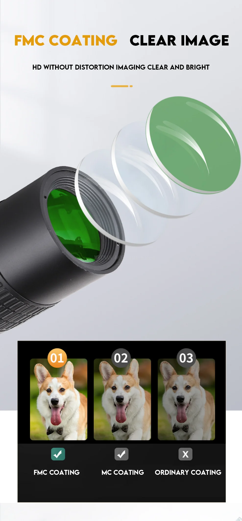 Recubrimiento de la lente del Objetivo: Recubrimiento de banda ancha multicapa FMC