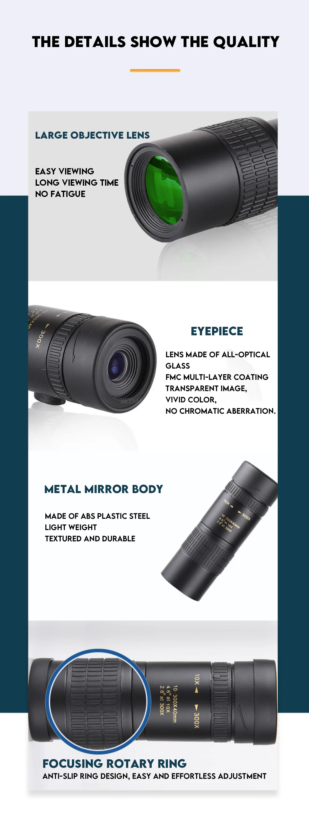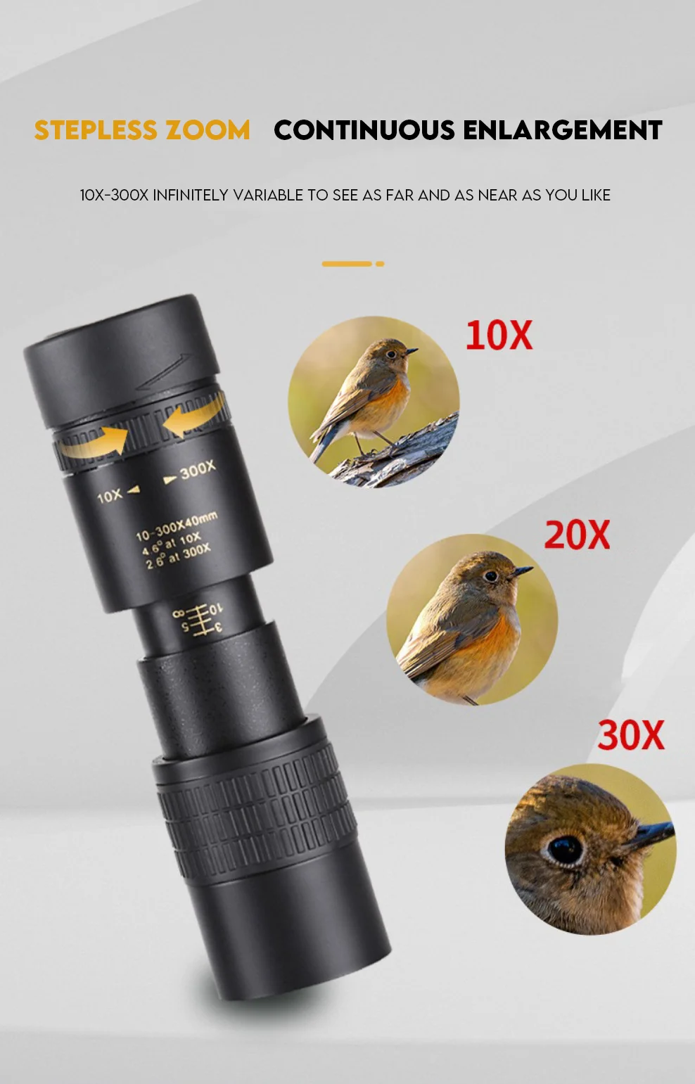 Visualización de alta definición: disfrute de imágenes cristalinas y colores vibrantes con este telescopio monocular 10-300X40.