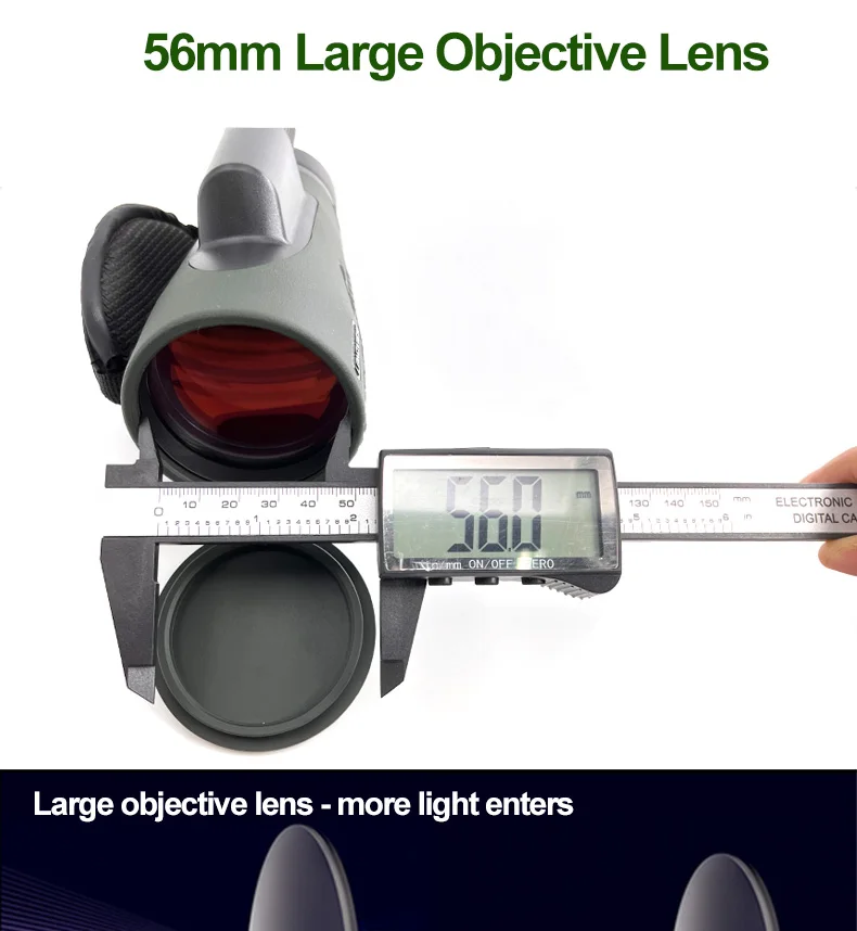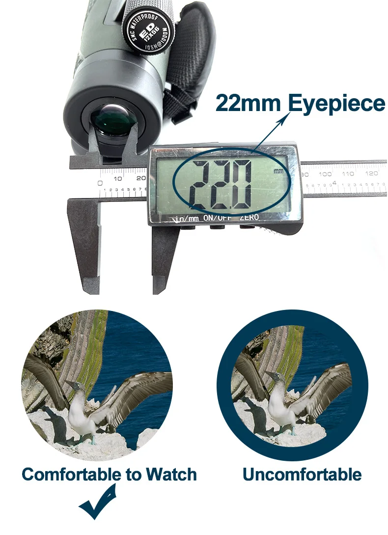 【Telescopio monocular con ocular grande de 21 mm, vista más grande, detalles más claros】 Ocular grande de 22 mm equipado, proporciona una visión más cómoda y más grande.El telescopio monocular de alta potencia proporciona un aumento de 12x con una lente ancha de 56 mm de diámetro objetivo, 105 m/1000 m de gran campo de visión, ofrece la mejor vista en la observación de estrellas de observación de aves.