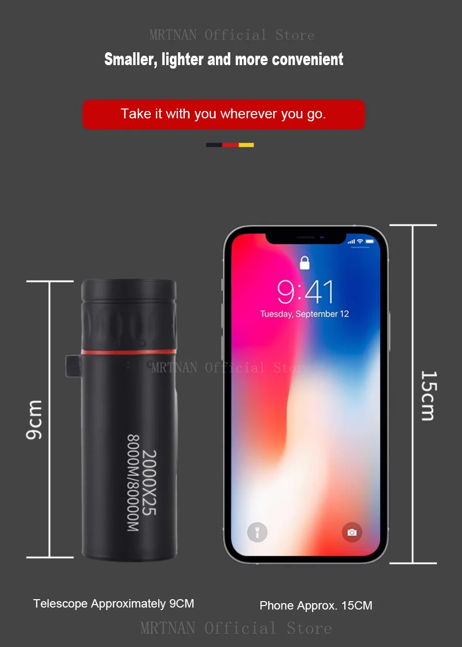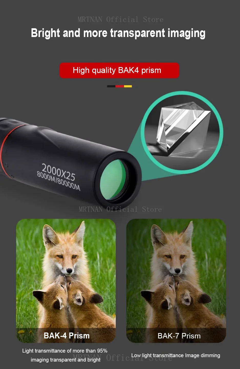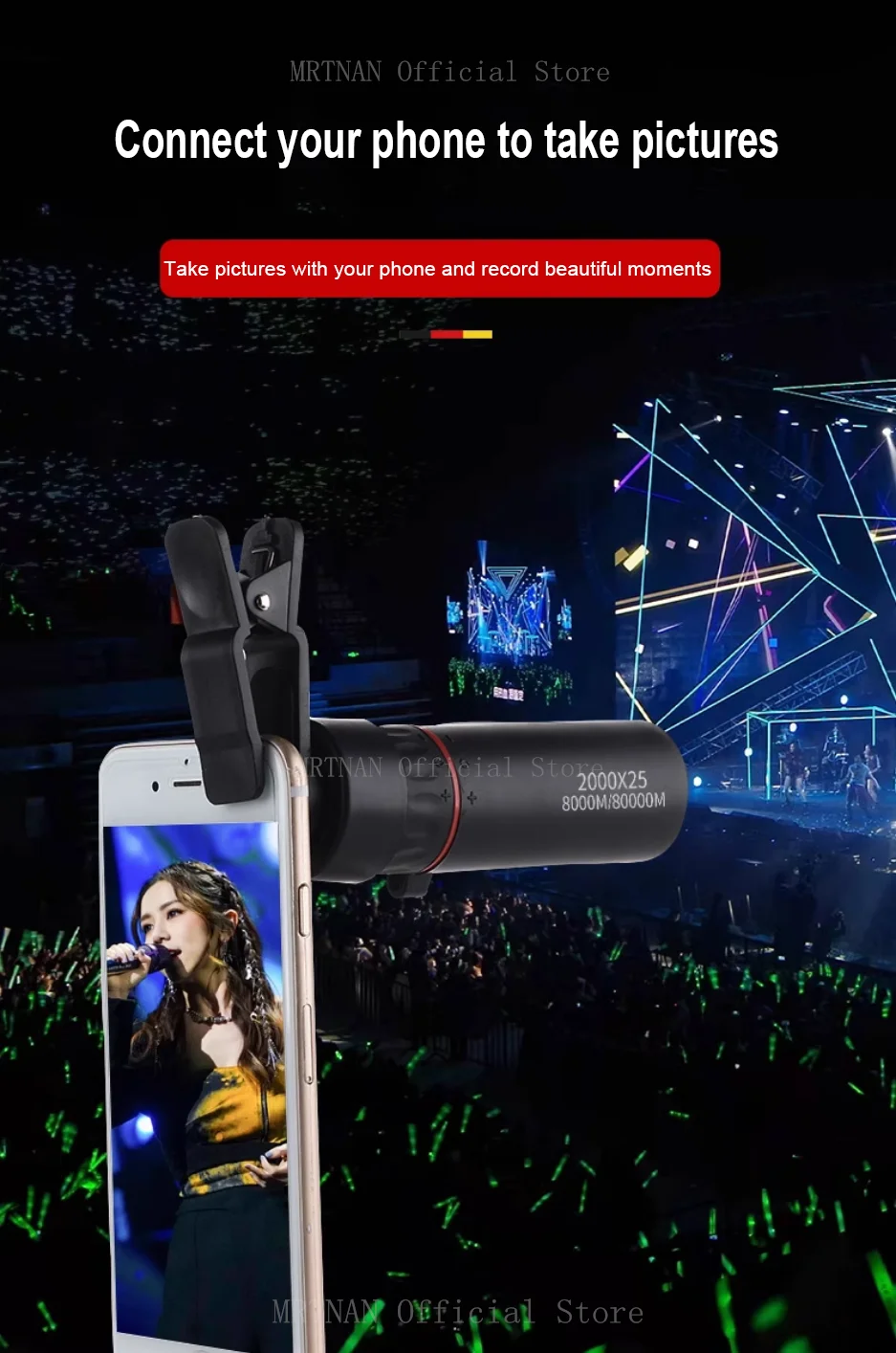 Telescopio Monocular HD 2000x25 para exteriores, Mini telescopio portátil para teléfono móvil con soporte, telescopios de observación de aves para acampar y cazar