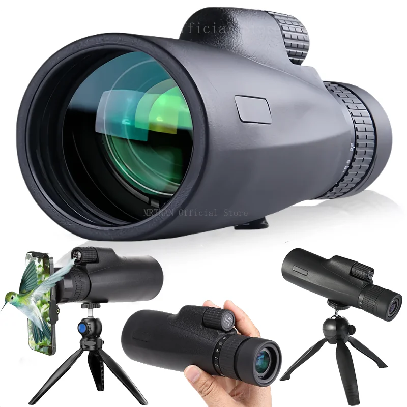 Telescopio HD con Zoom 10-30x50, monocular para acampar, potente largo alcance con trípode, Clip para teléfono para ver los binoculares de caza de pájaros
