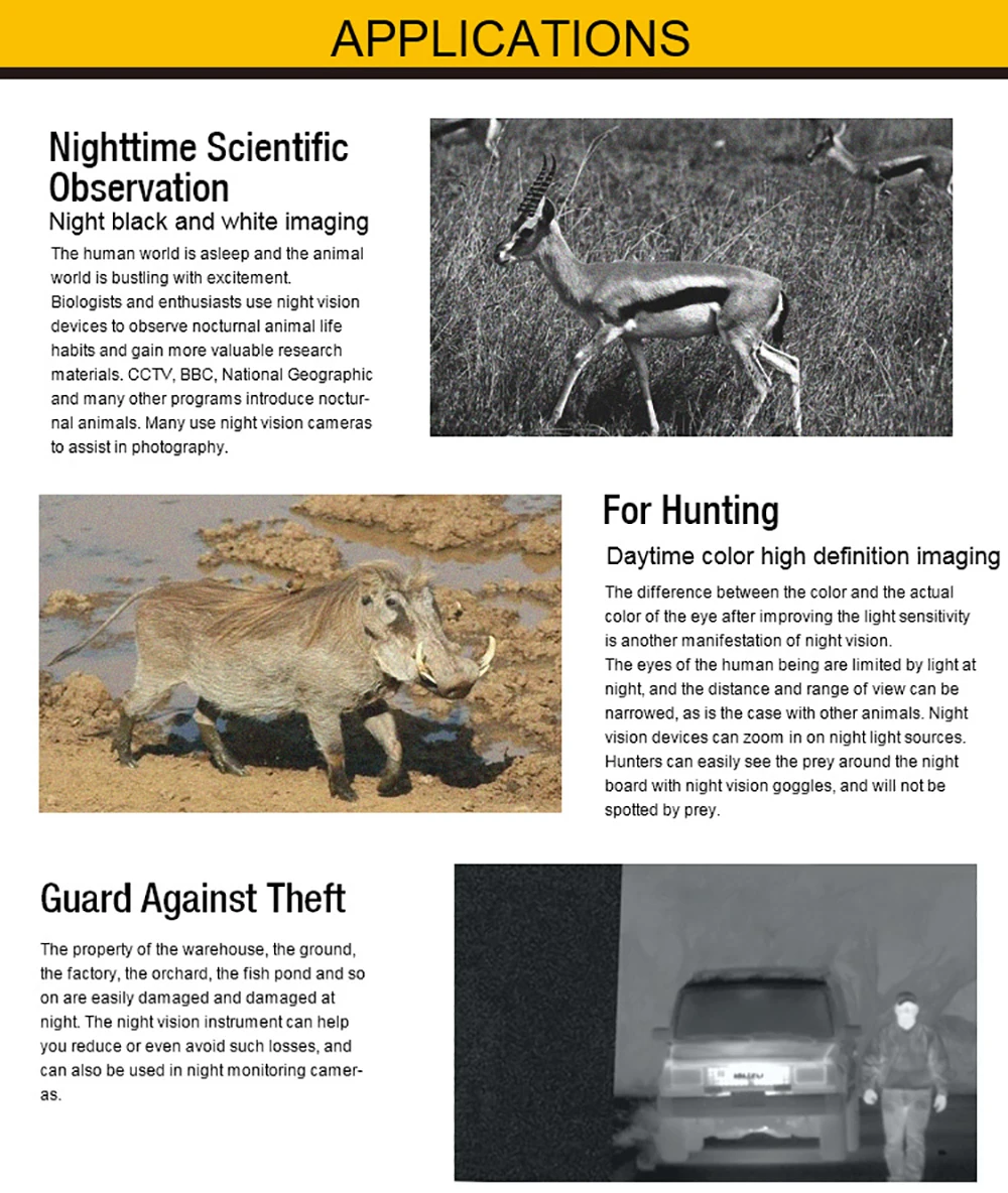 Night Vision es un instrumento electrónico de precisión que se utiliza para observar el objetivo durante la noche y el crepúsculo.