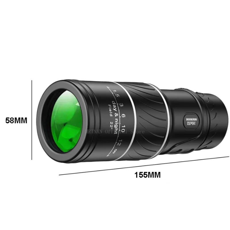Telescopio Monocular de película verde de alta definición portátil para exteriores 16x52, telescopio de fotografía de conciertos de senderismo con escopo HD con poca luz