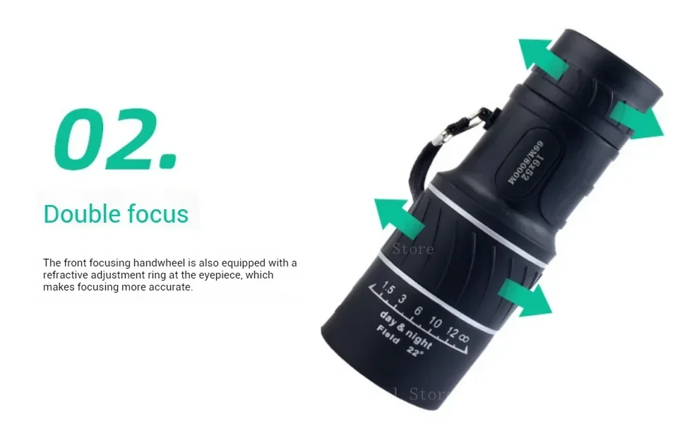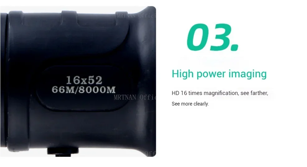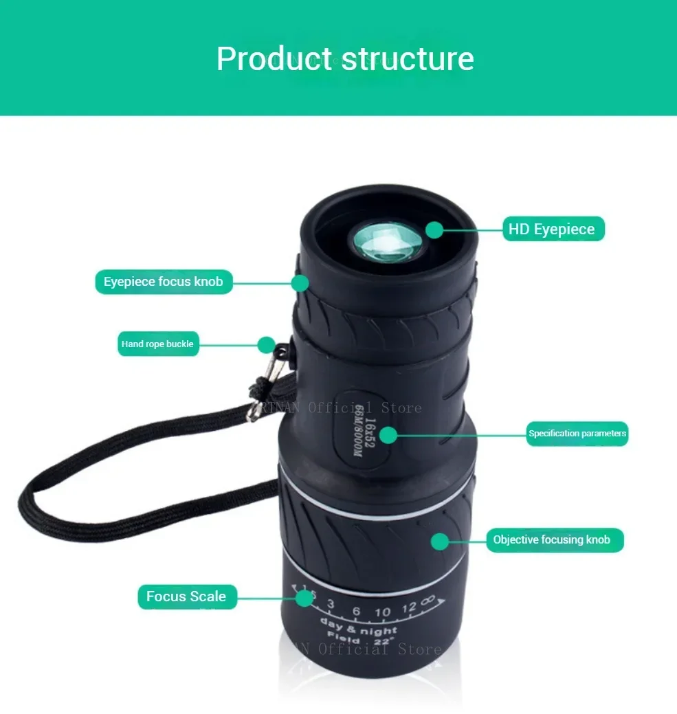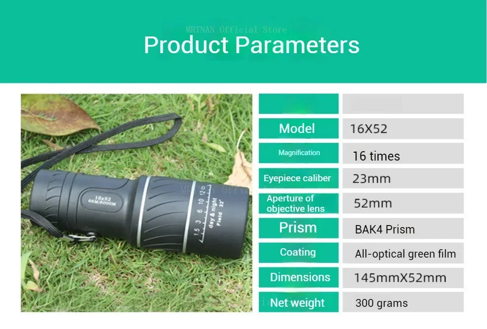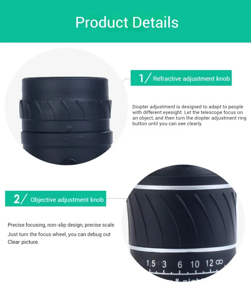 Telescopio monocular de película verde de alta definición portátil para exteriores 16x52, telescopio de concierto para senderismo con poca luz y alcance HD