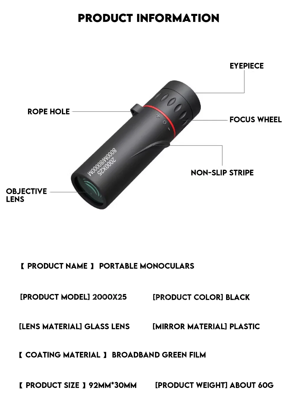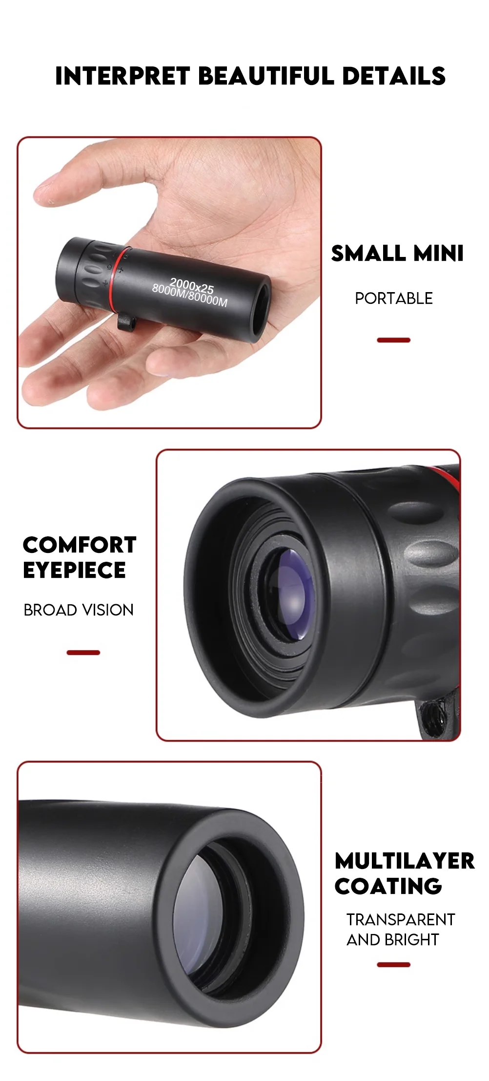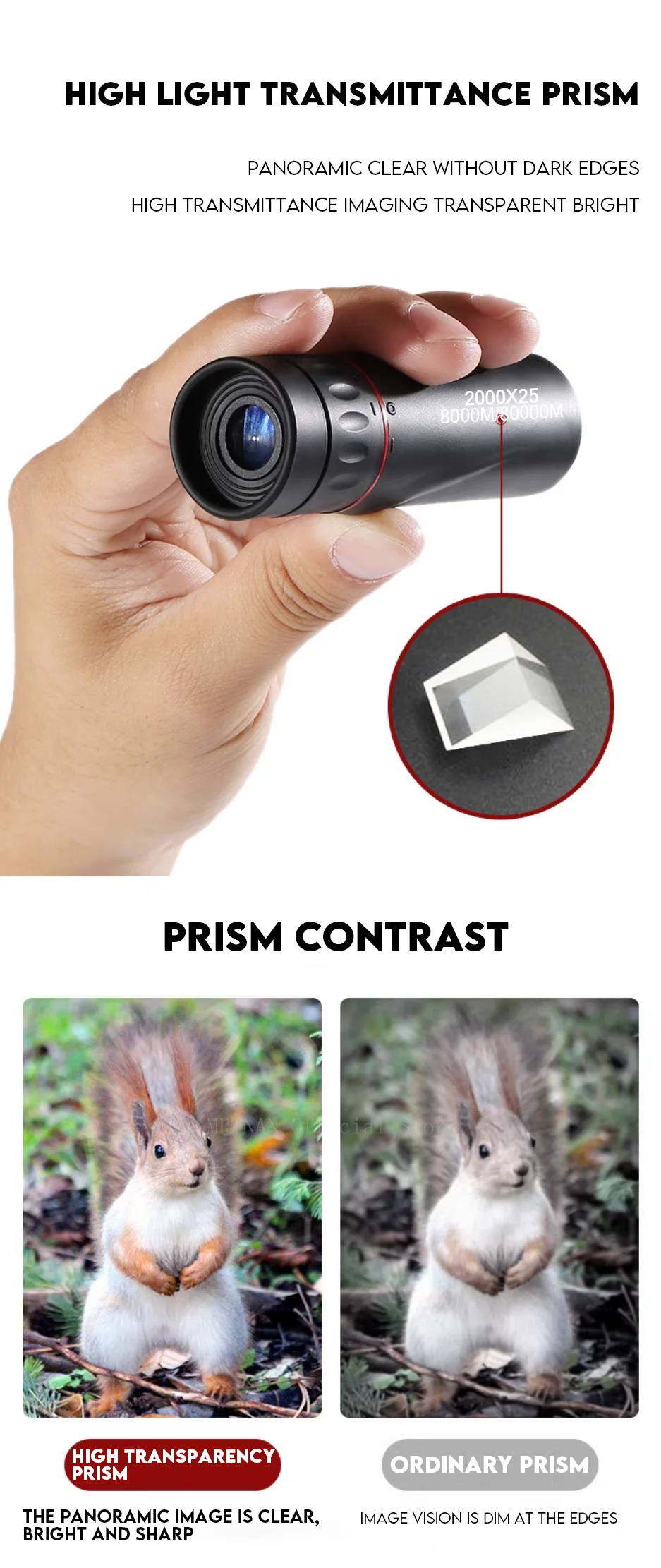 Telescopio Monocular HD de 2000x25, Mini telescopio portátil para teléfono móvil con soporte, telescopios para acampar al aire libre, caza, observación de aves