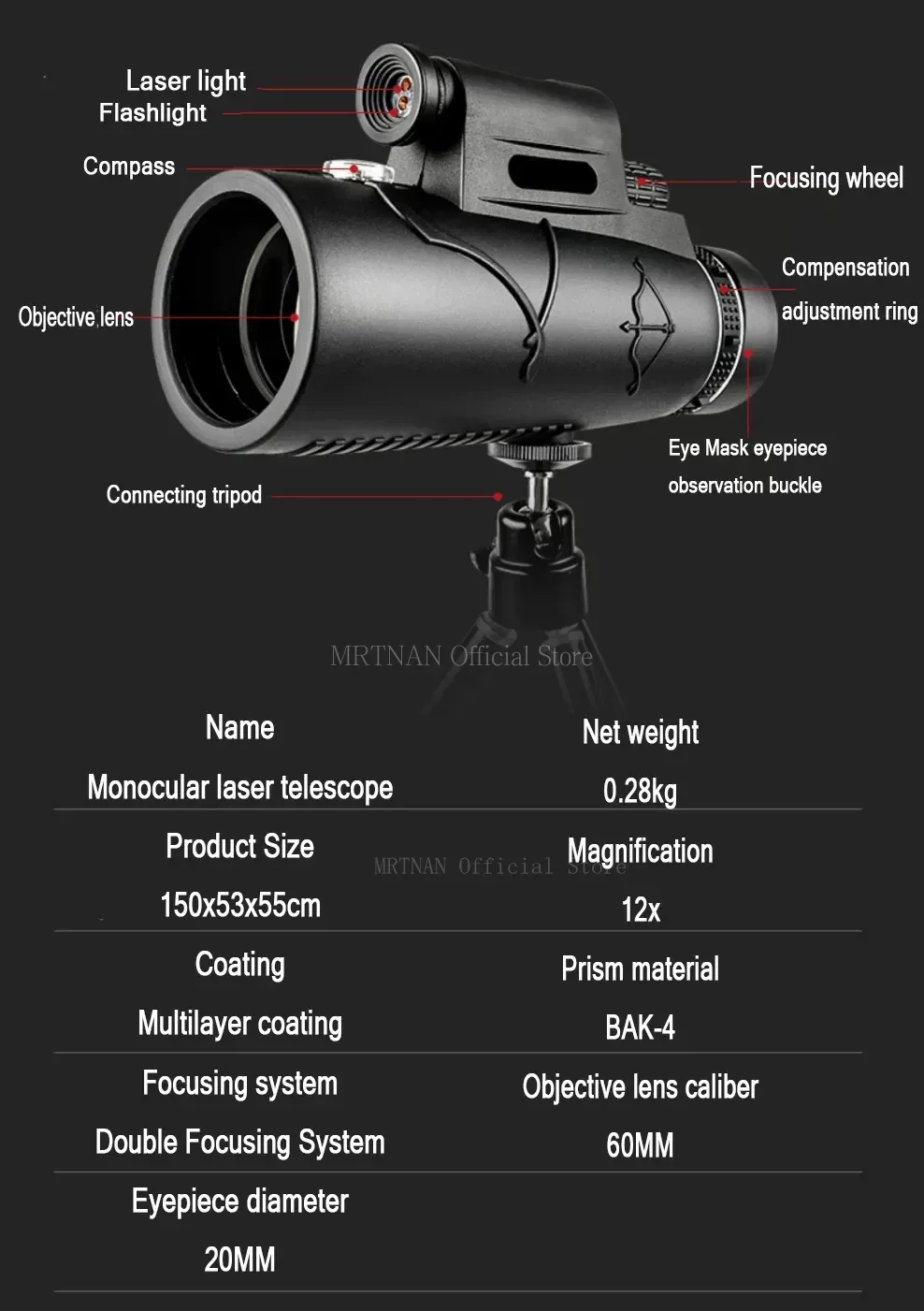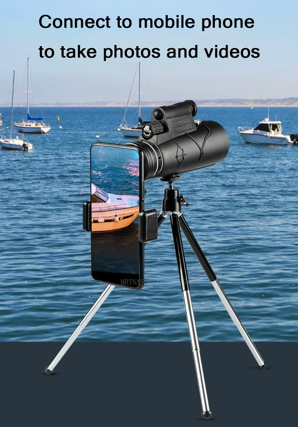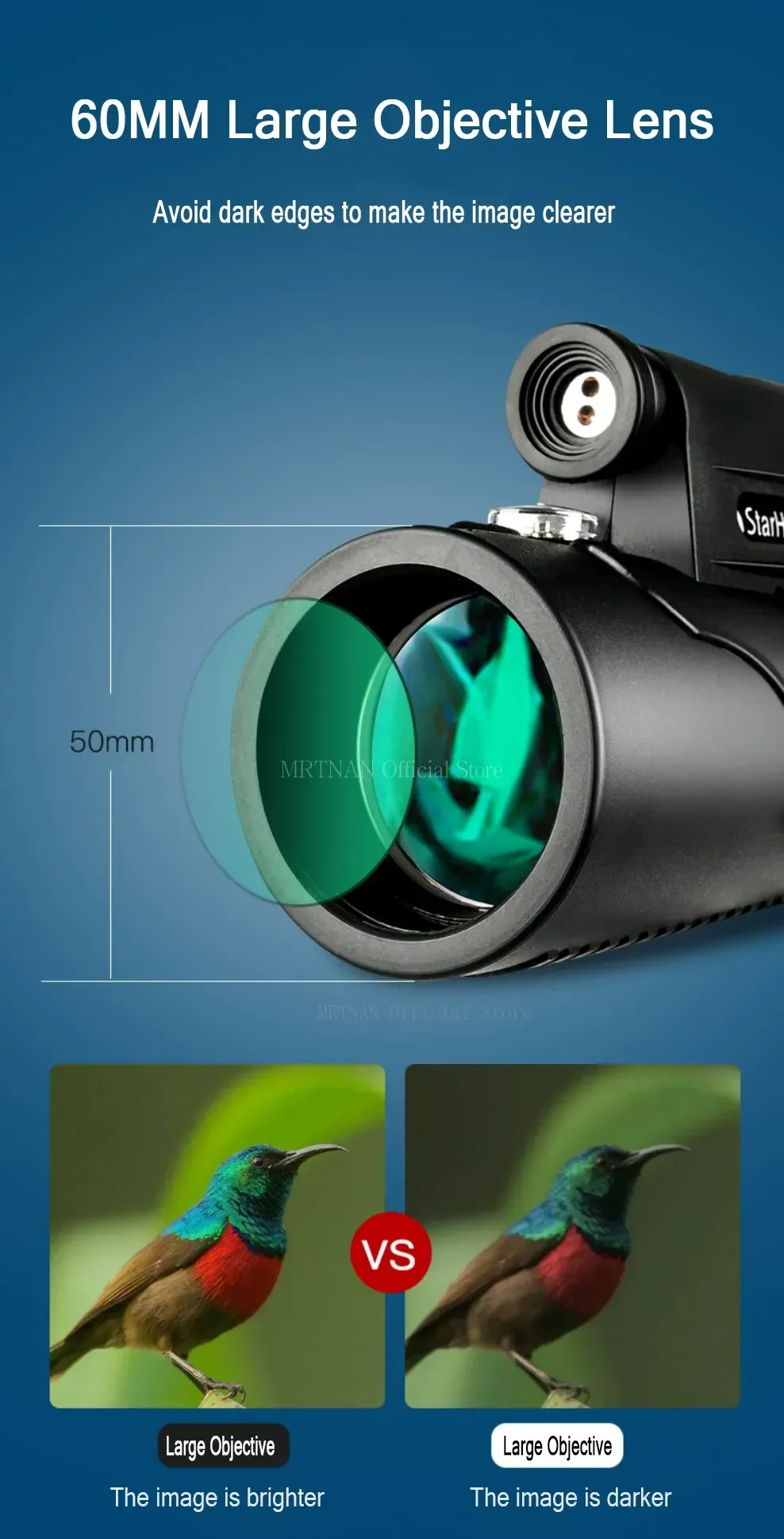Telescopio Monocular potente 50x60, binoculares portátiles, telescopio de largo alcance para caza y Camping con trípode, Clip para teléfono