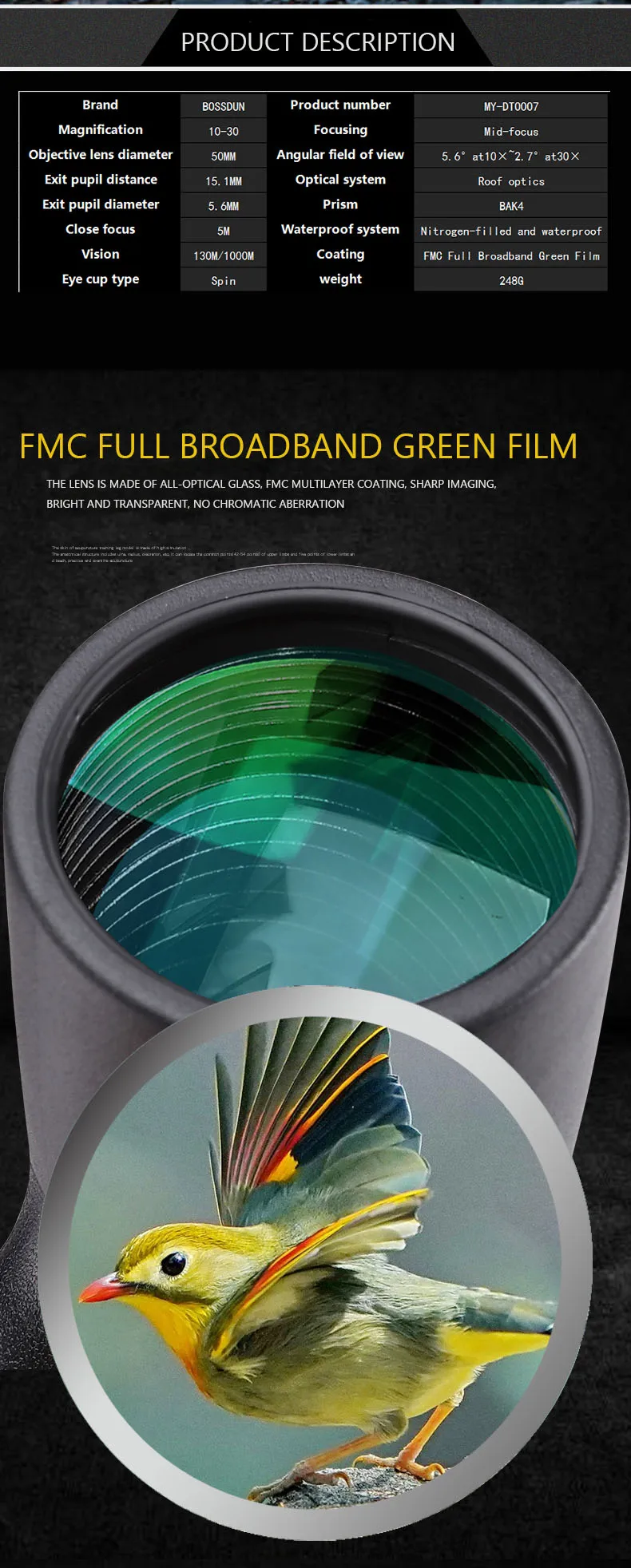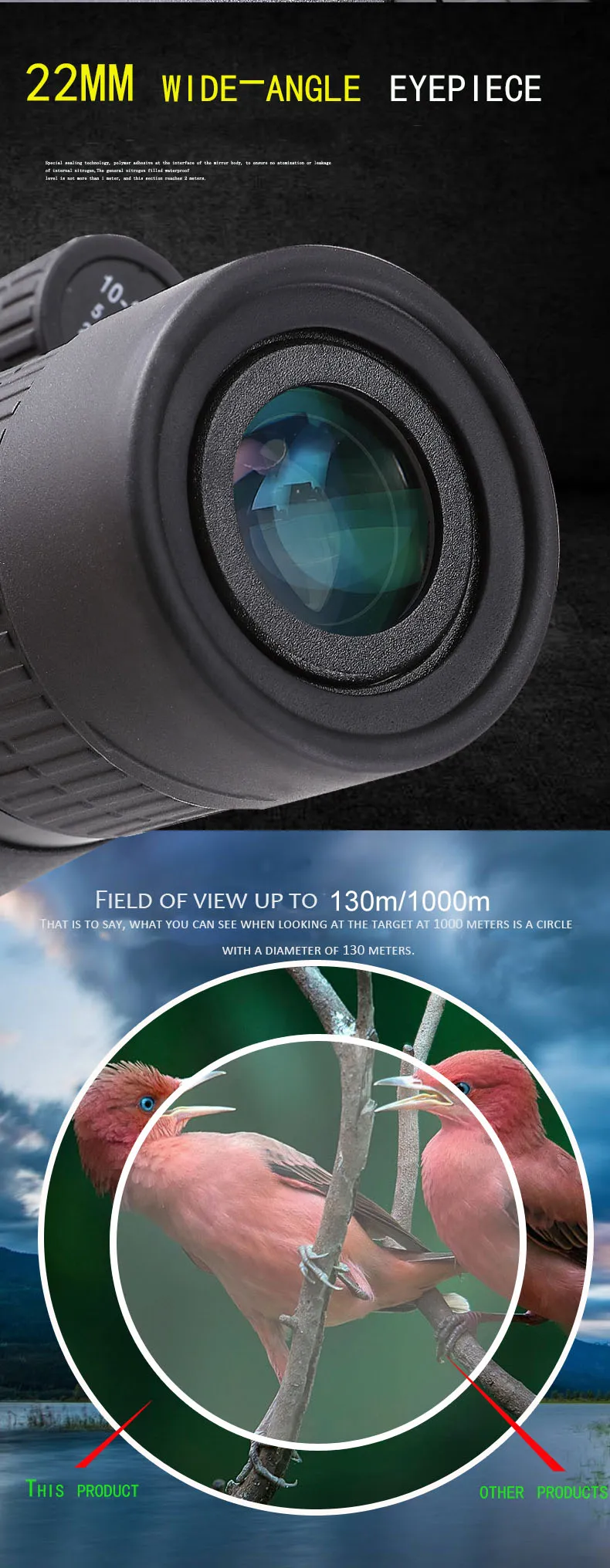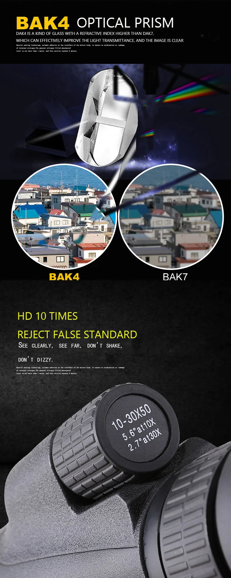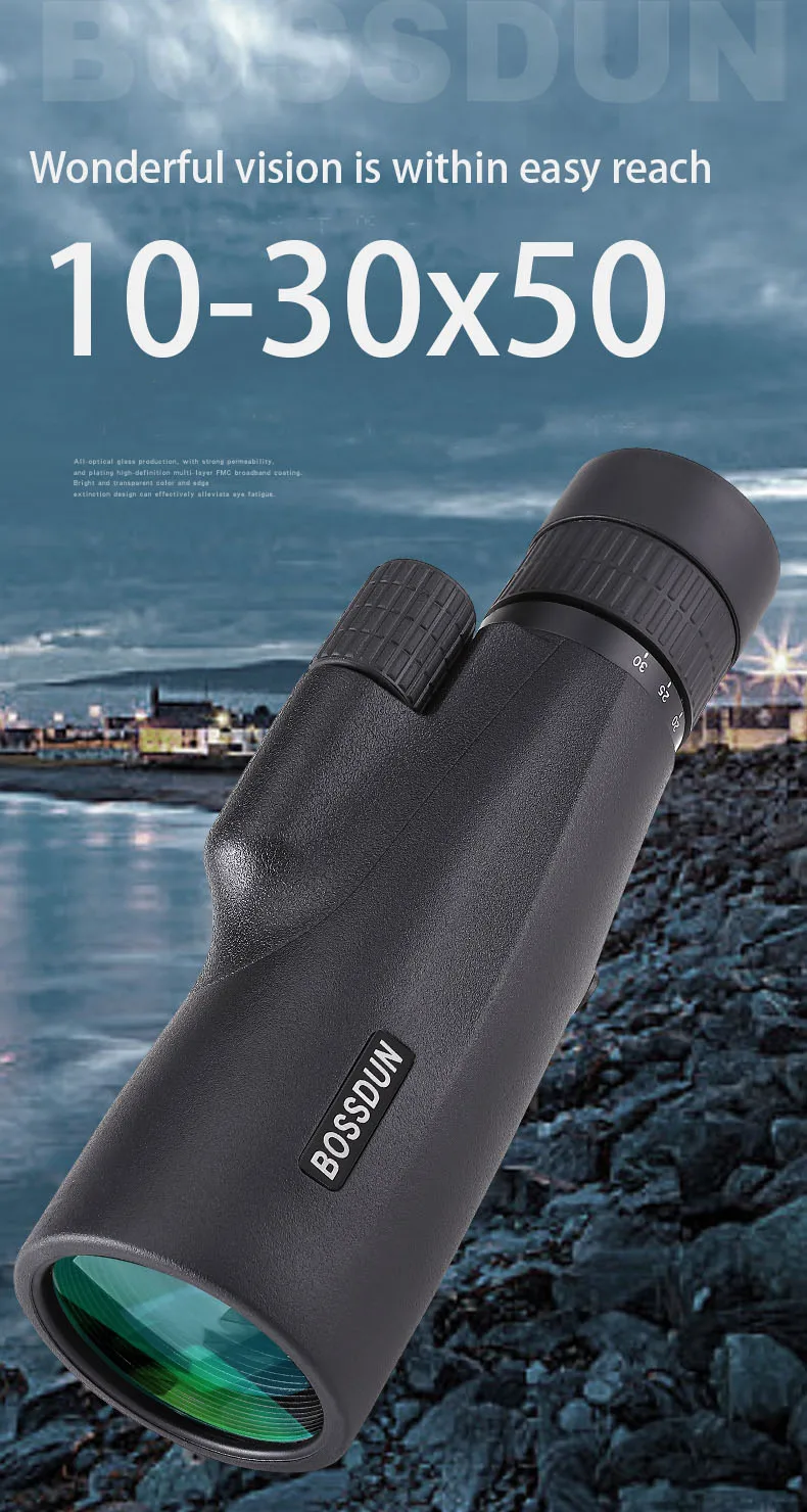 Angular field of view:5.6°at10×~2.7°at30×