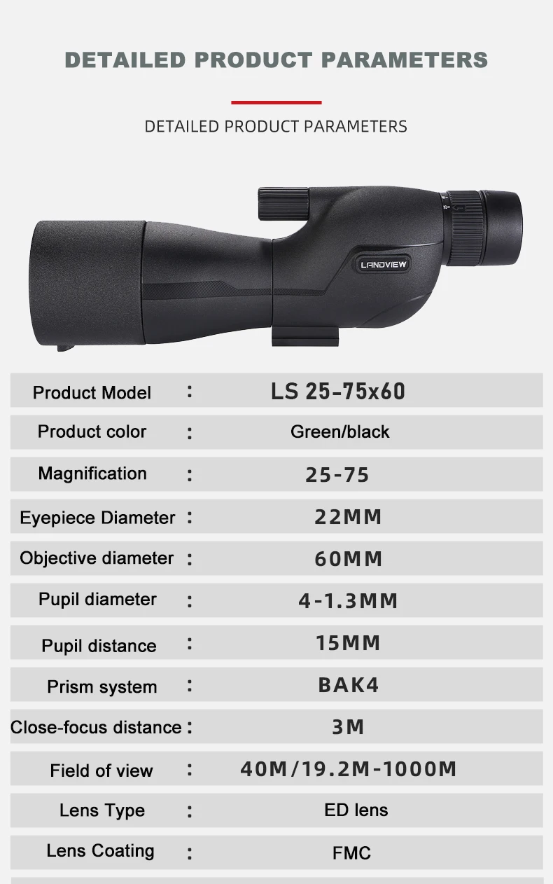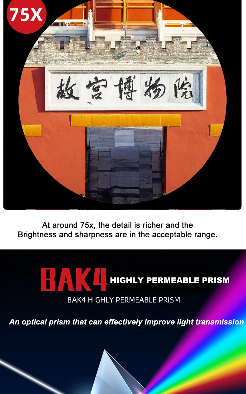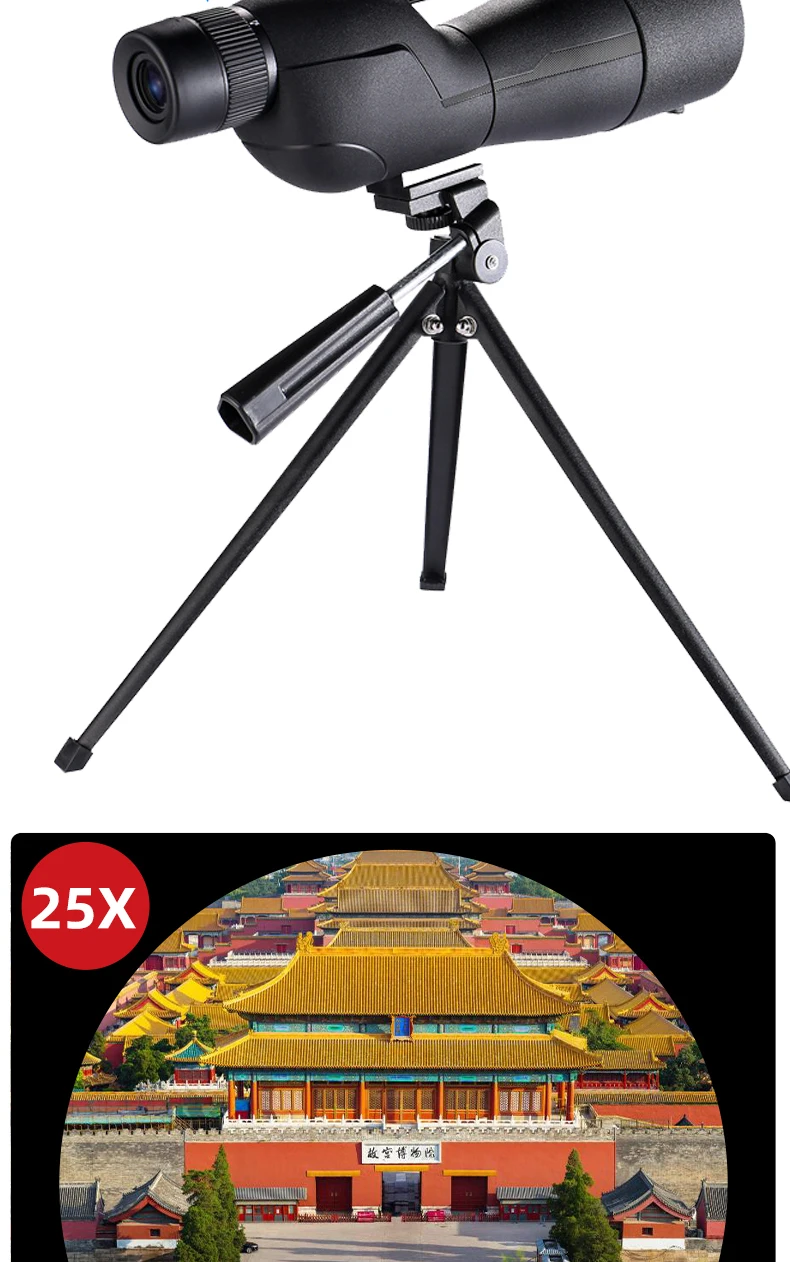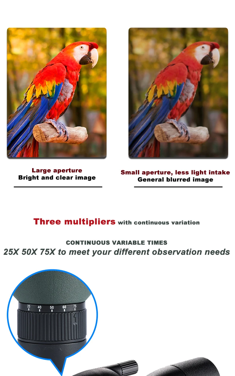 Potente telescopio monocular de 25-75X60mm para observación de aves, telescopio de largo alcance, BAK4 catalejo, Prisma, binoculares HD para caza
