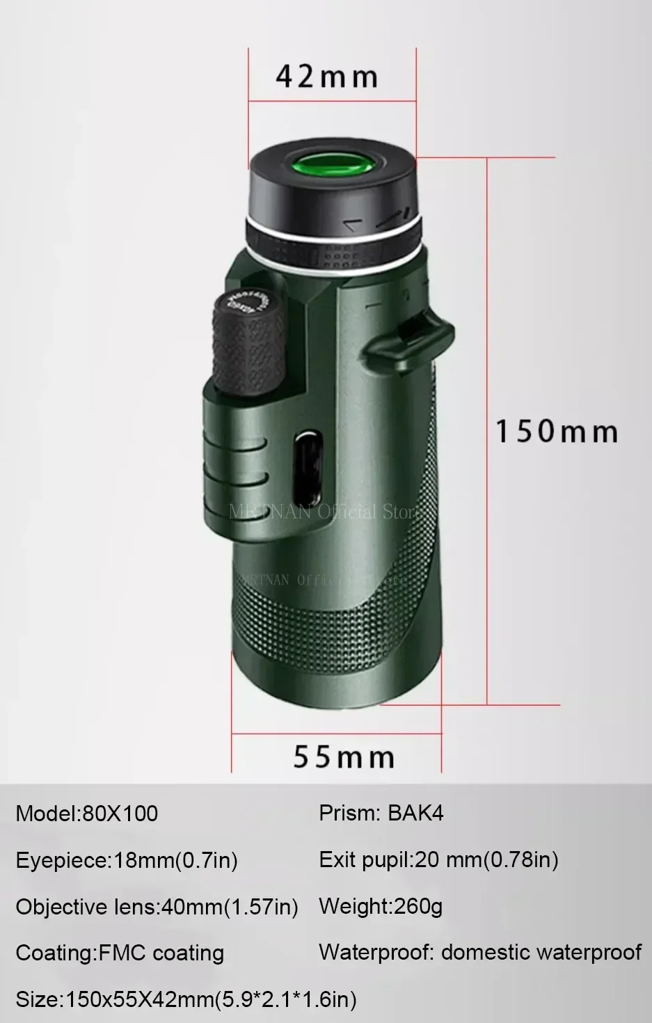 Monocular portátil con aumento de 80x100
