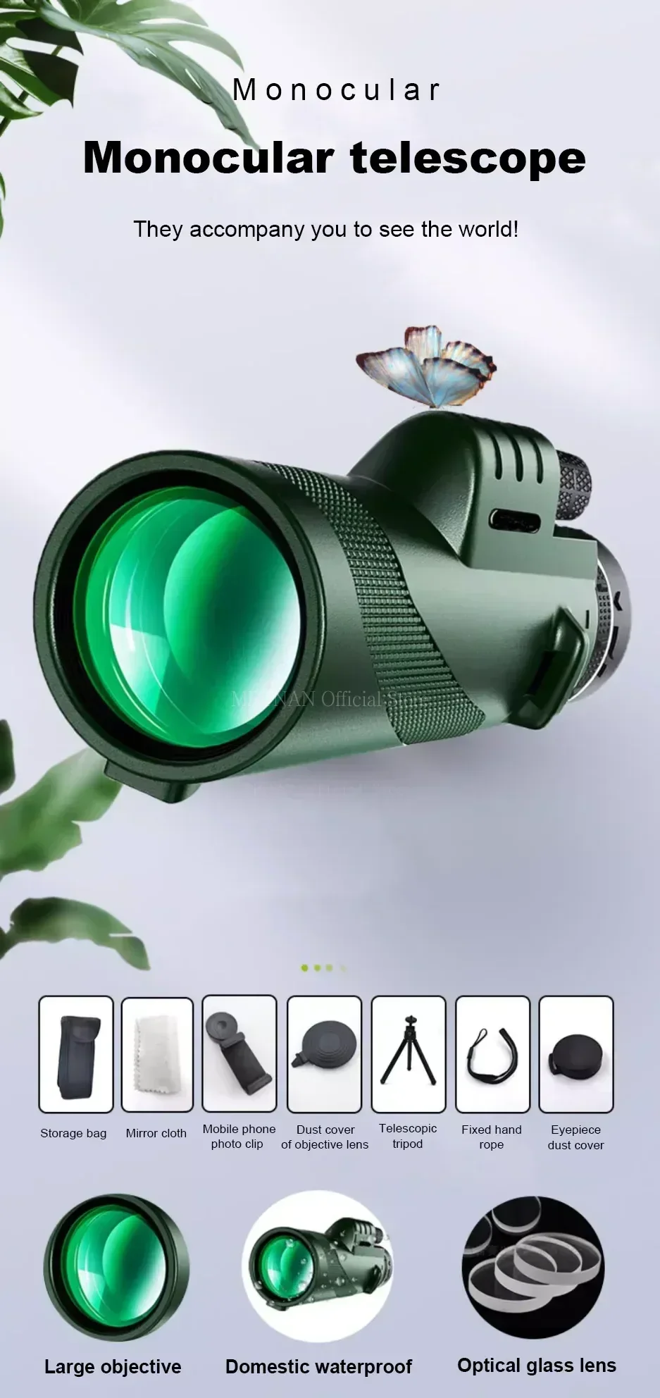 1. Monoculares con aumento de 80*100, seleccionados entre prisma BAK4 y lente con revestimiento multicapa, revestimiento de banda ancha de cinco capas