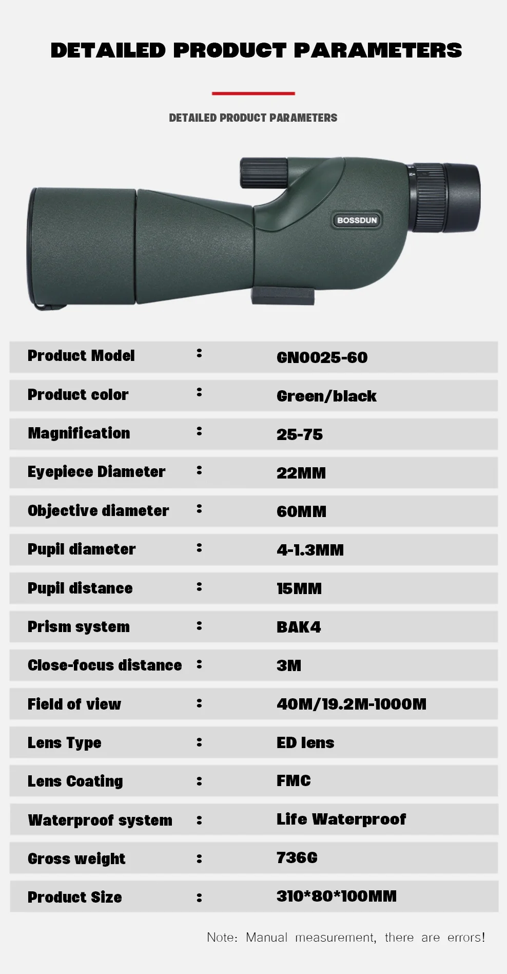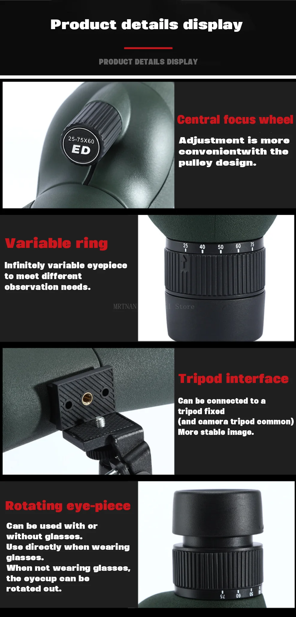 1. 25-75x60 lente de observación de aves de alta definición de gran aumento