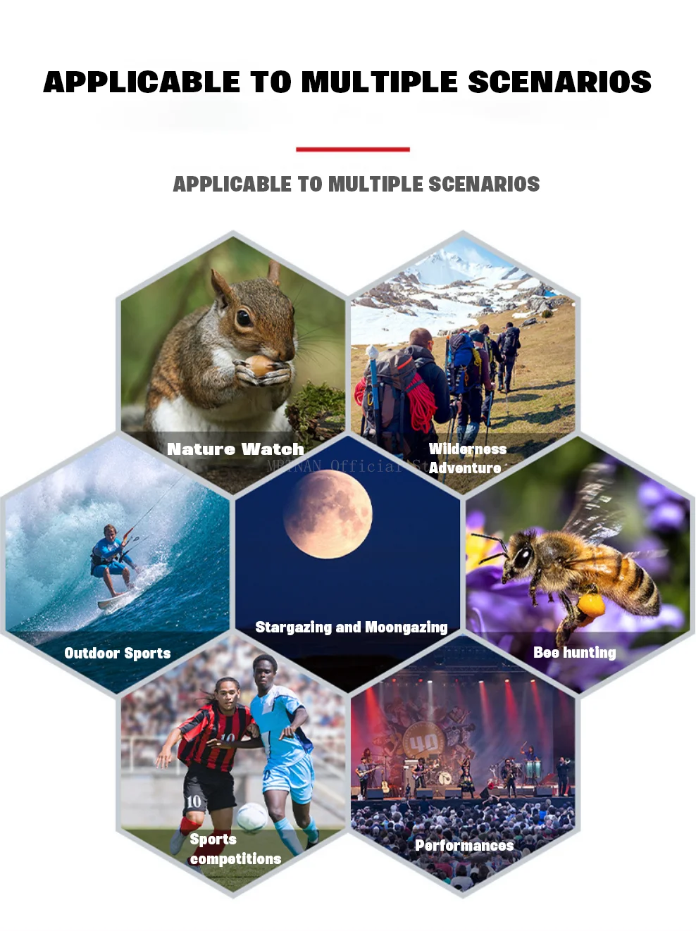 Observación de la naturaleza, aventura en el desierto, deportes al aire libre, observación de estrellas, caza de abejas, competición deportiva, actividades de rendimiento, etc.