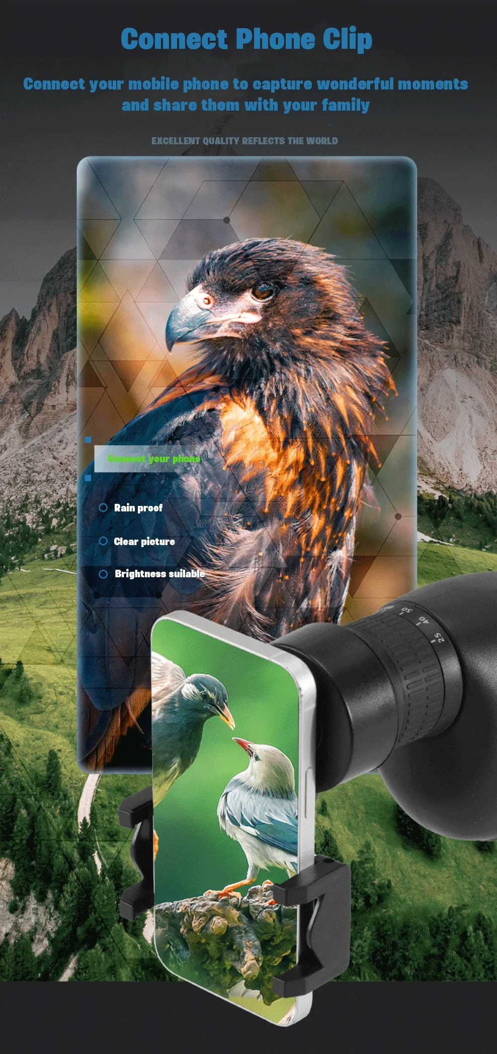 ● Resistente al agua: puede evitar cambios ambientales repentinos que dañen el telescopio. El acabado está hecho de un material antideslizante sin costuras, por lo que no parece que se resbale de tus manos si está mojado.