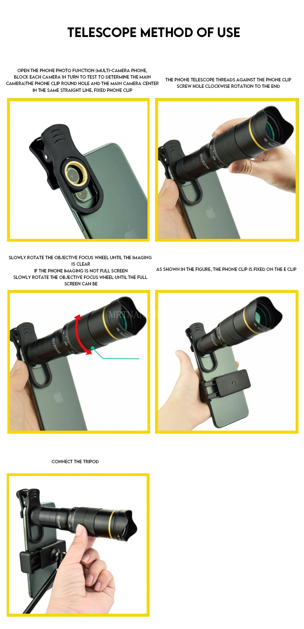 3. Podemos colocar el teléfono en el resistente trípode ajustable después de colocar la lente; Utilice también el trípode como mini palo para selfies.