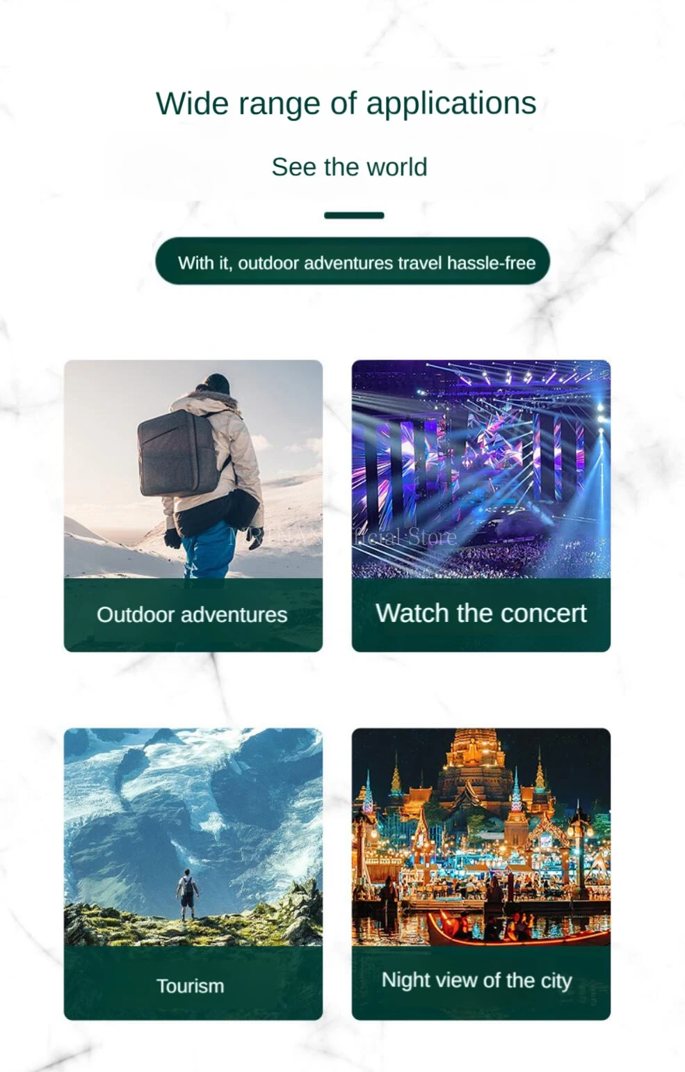 6.Ideal para viajes, vacaciones, caminatas, campamentos, deportes, disfrutar de la hermosa naturaleza, ver pájaros, observar especies, uso general y más actividades al aire libre.