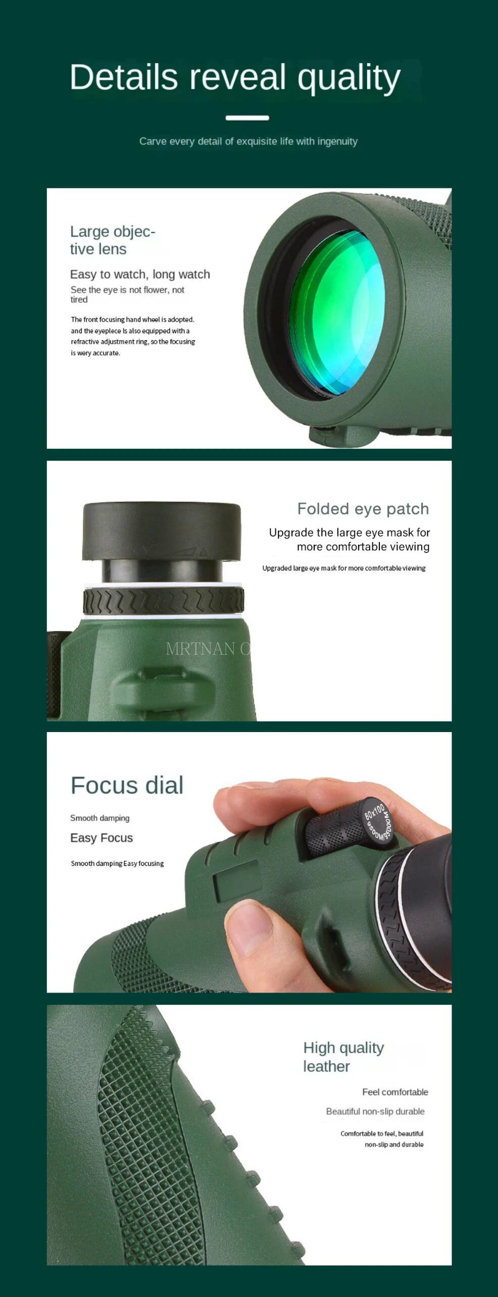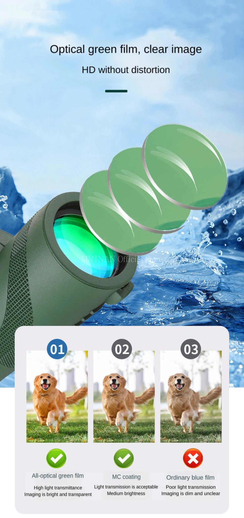 1. Monoculares con aumento de 80*100, seleccionados entre prisma BAK4 y lente con revestimiento multicapa, revestimiento de banda ancha de cinco capas