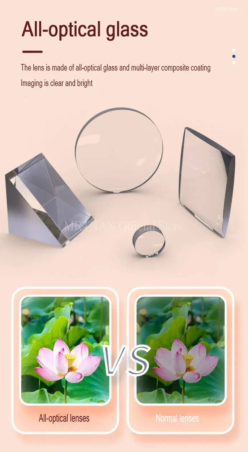 4. Recubrimiento de película verde de banda ancha para aumentar la transmitancia de luz y hacer que el color de la imagen sea más completo.